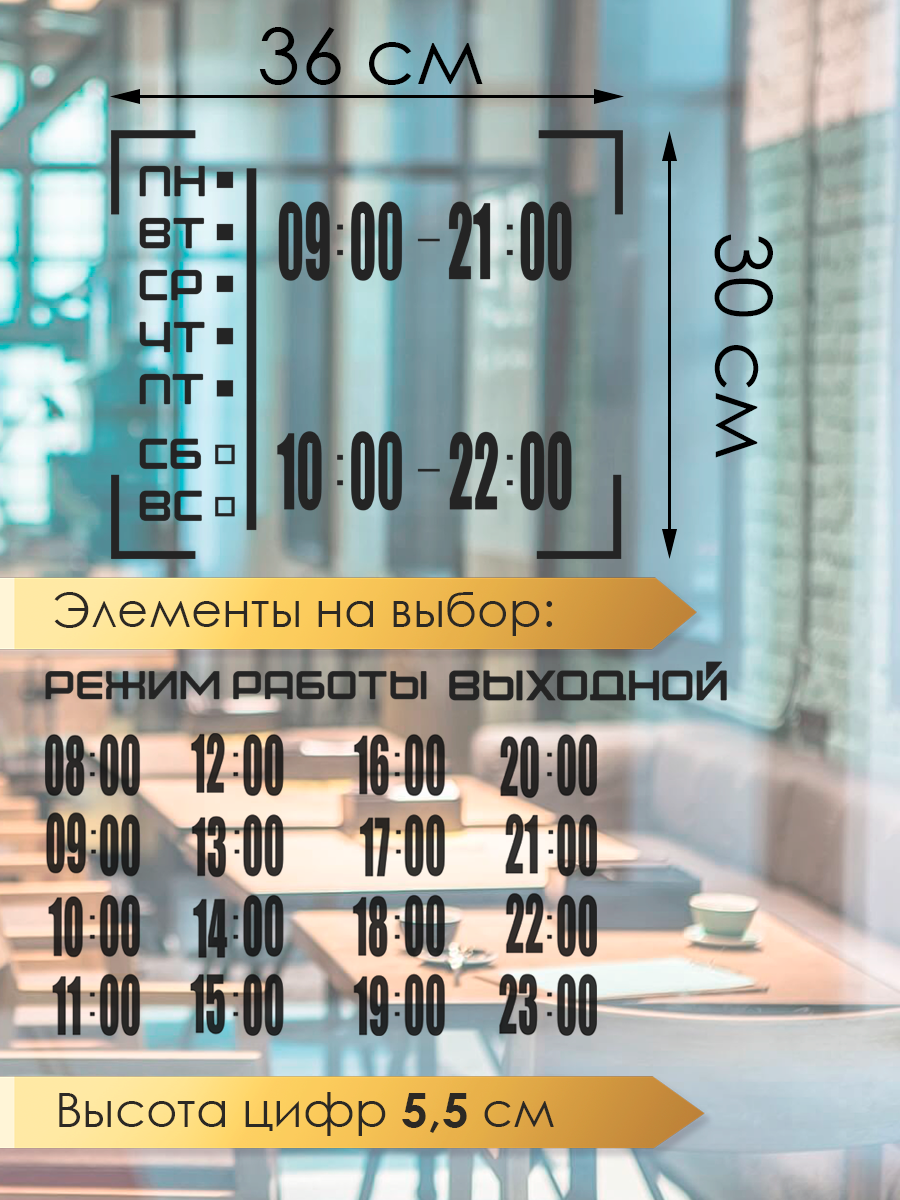 Наклейка 'Режим Работы 6' (часы работы магазина с выходными, выбери свое время) 726 ₽