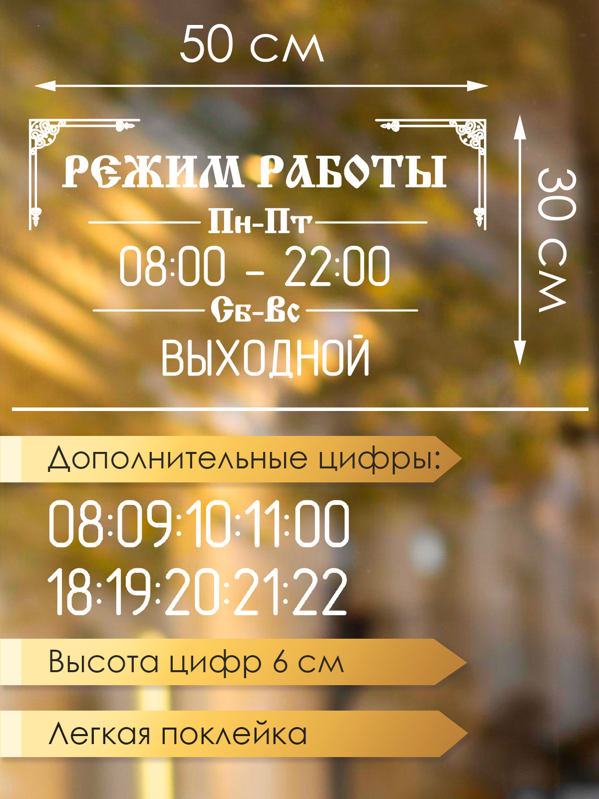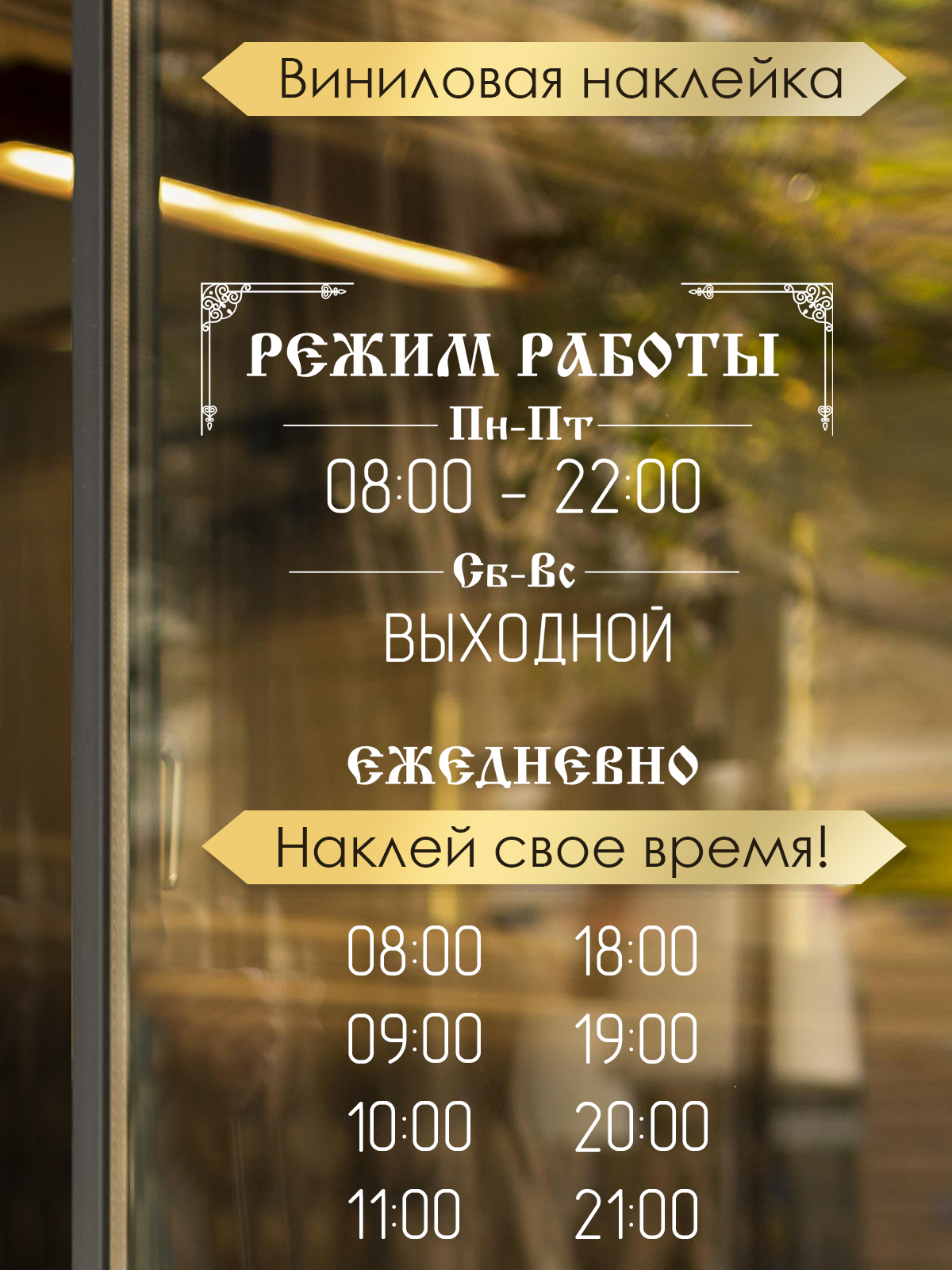 Наклейка 'Режим Работы 6' (часы работы магазина с выходными, выбери свое время) 726 ₽