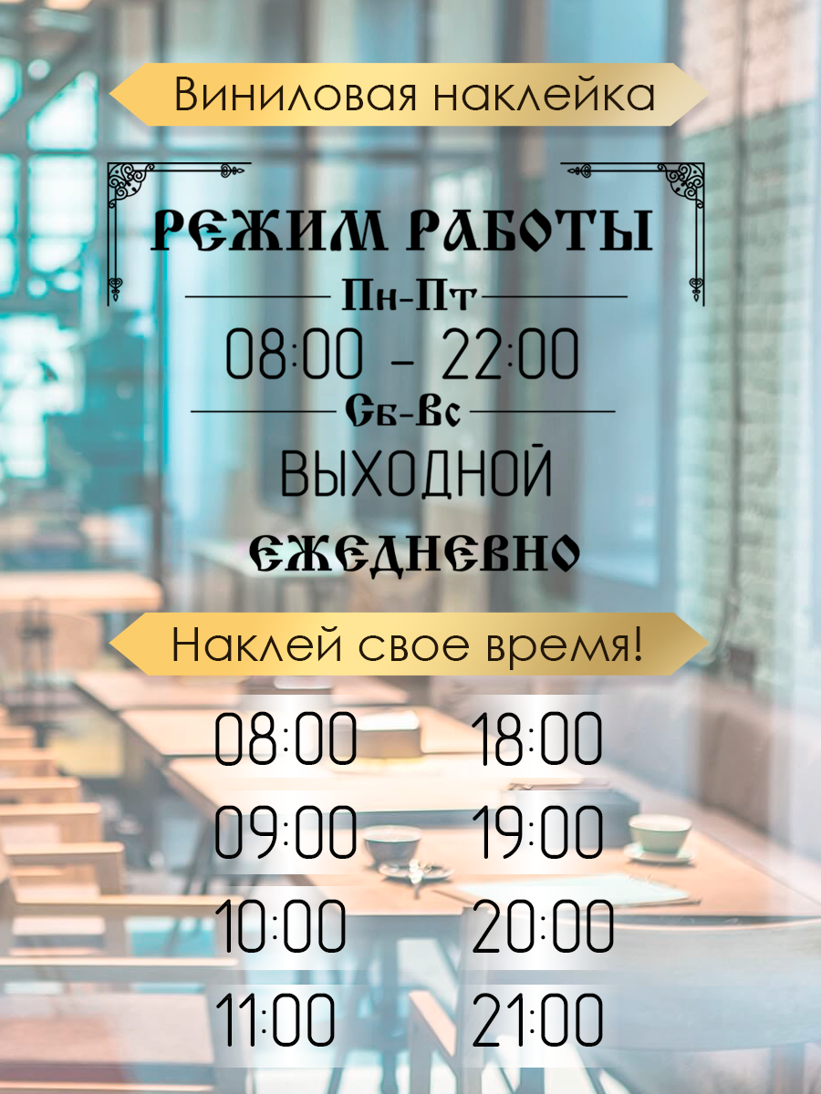 Наклейка 'Режим Работы 7' (часы работы магазина с выходными, выбери свое время) 726 ₽