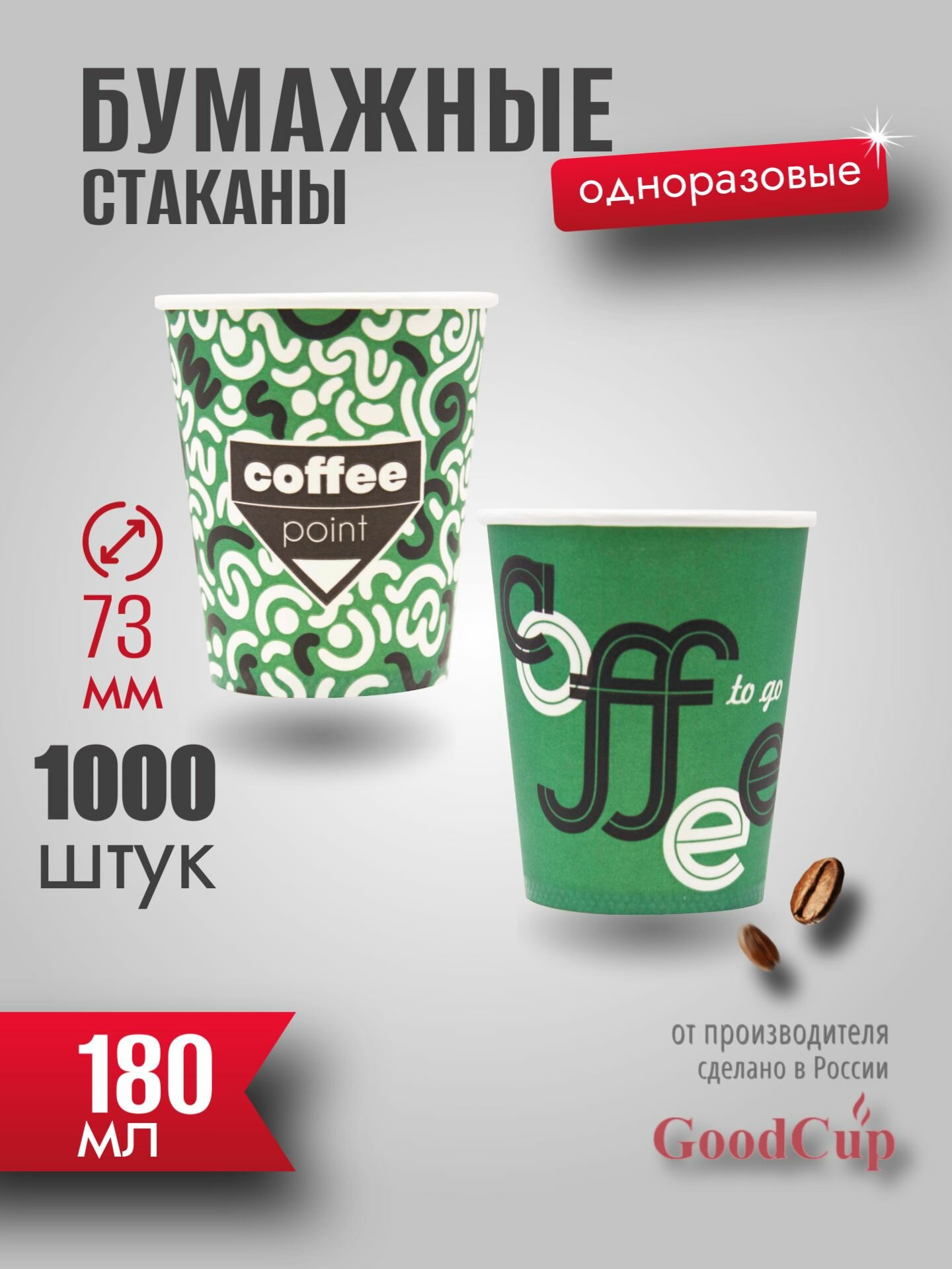Одноразовые стаканы GoodCup бумажные для кофе и чая, холодных и горячих напитков 180 мл, 1000 штук информация: