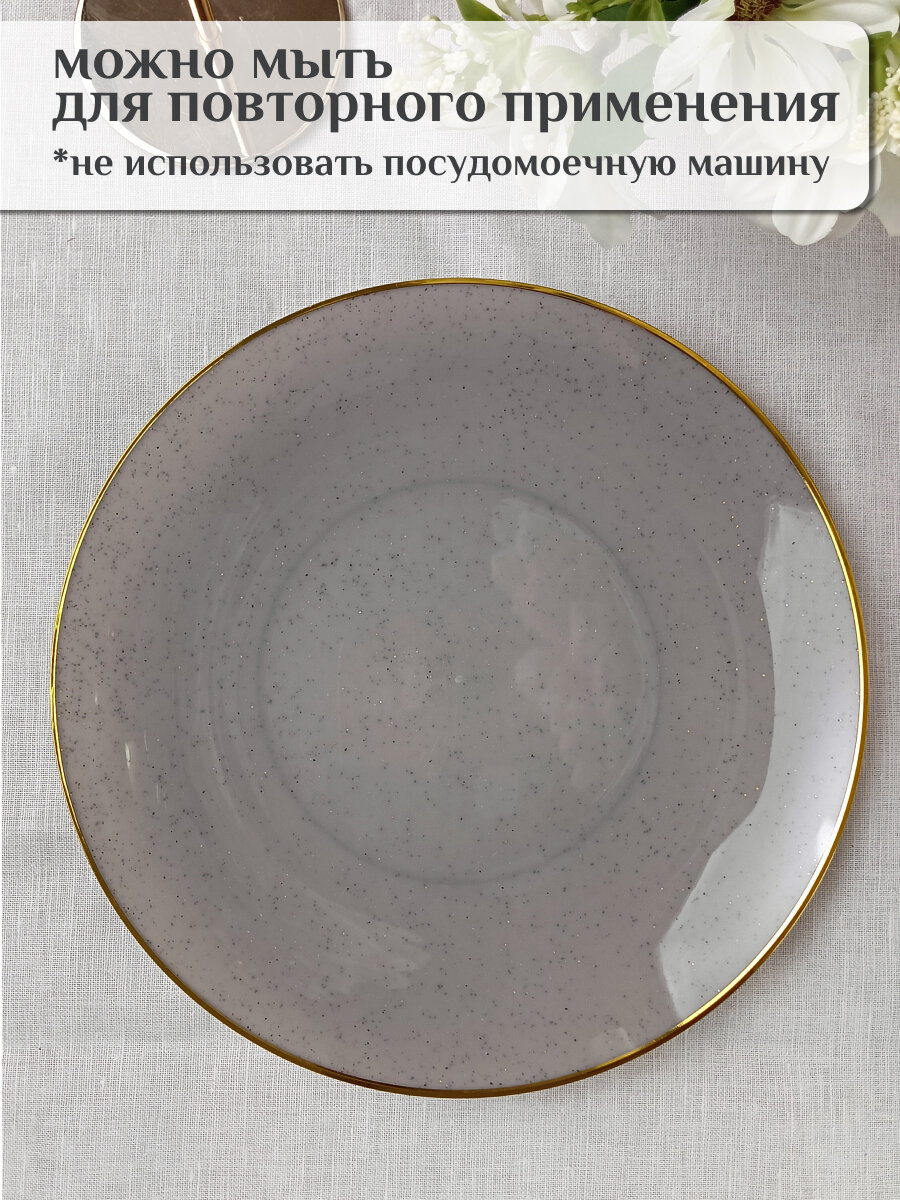 Тарелки одноразовые пластиковые серые 23 см 10 шт для праздника посуда 1 100 ₽