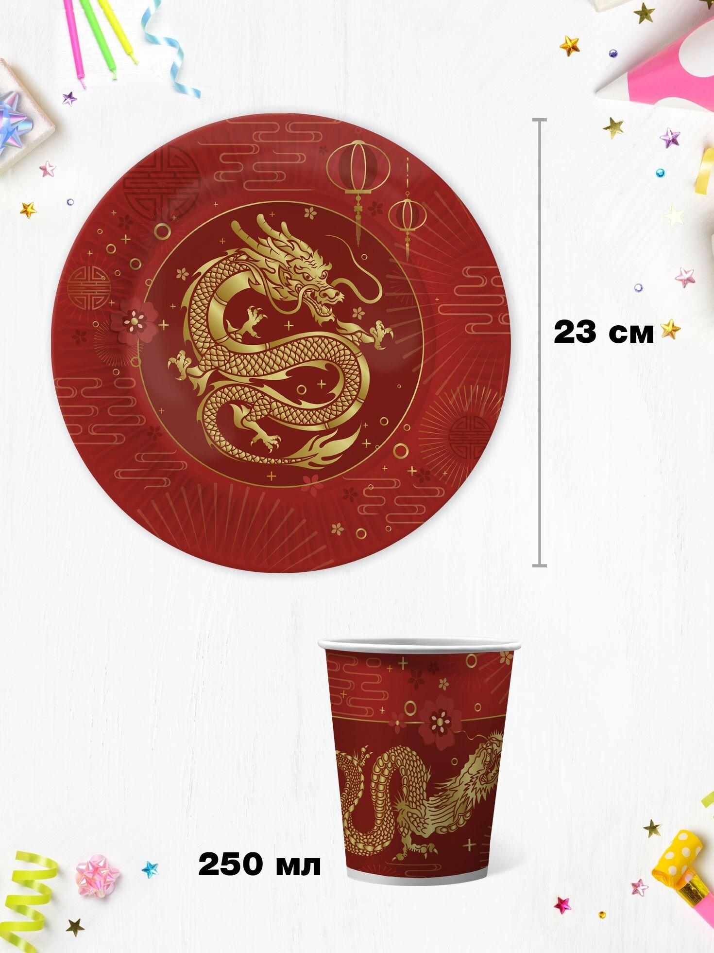Набор одноразовой бумажной посуды для праздника ND Play. Золотой дракон (стакан, тарелка 23 см, по 12 шт.) информация: