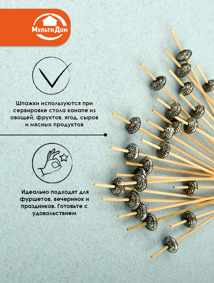 Отзывы на Шпажки для канапе "Дамаск", бамбук, декор из пластмассы, набор 24 шт, длина 12 см.
