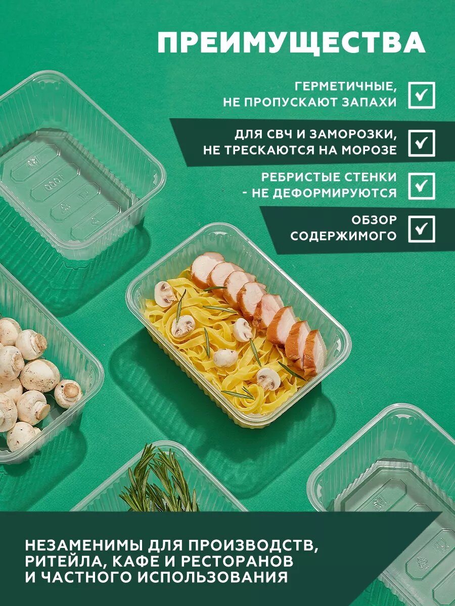 Контейнеры одноразовые пластиковые прозрачные с крышкой 1000 мл. 50 шт. для хранения продуктов заморозки