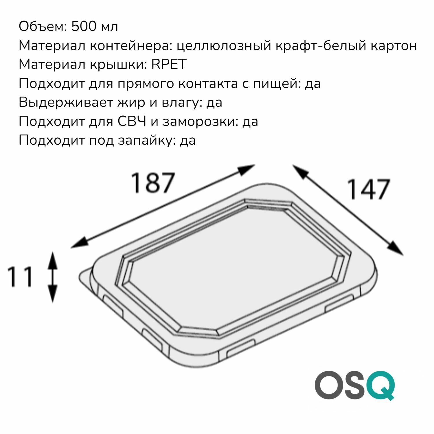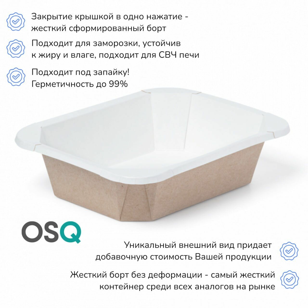 Контейнер одноразовый для еды с пластиковой крышкой плоской крафтовый OSQ OCTOBOX 500 мл объем, 10 шт. информация: