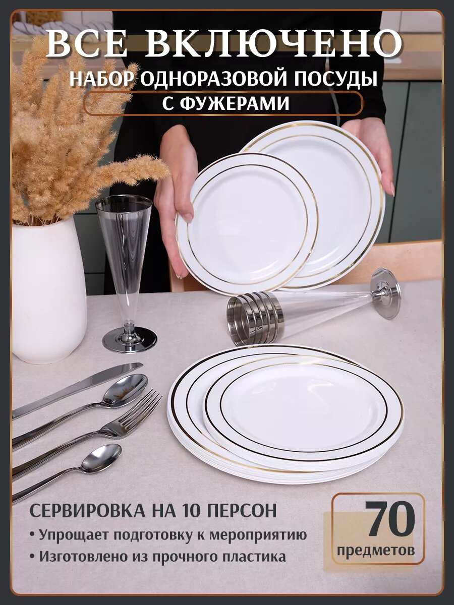 10 цен на Посуда одноразовая для праздника с фужерами 70 шт
