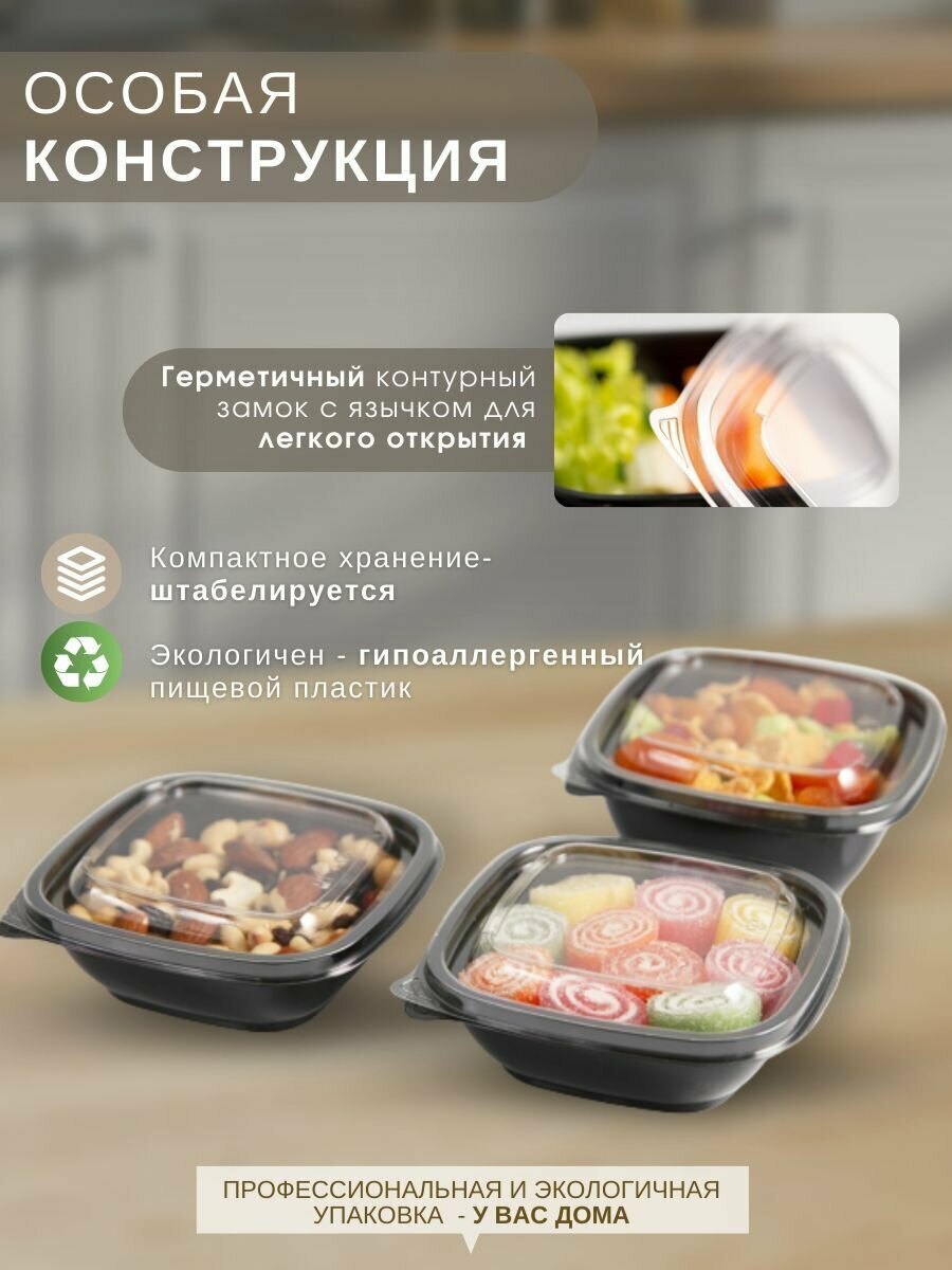 Контейнеры одноразовые пластиковые Каштан Тренд черные с прозрачной крышкой 500 мл, набор контейнеров 46 шт ( + 4 шт в подарок) 950 ₽