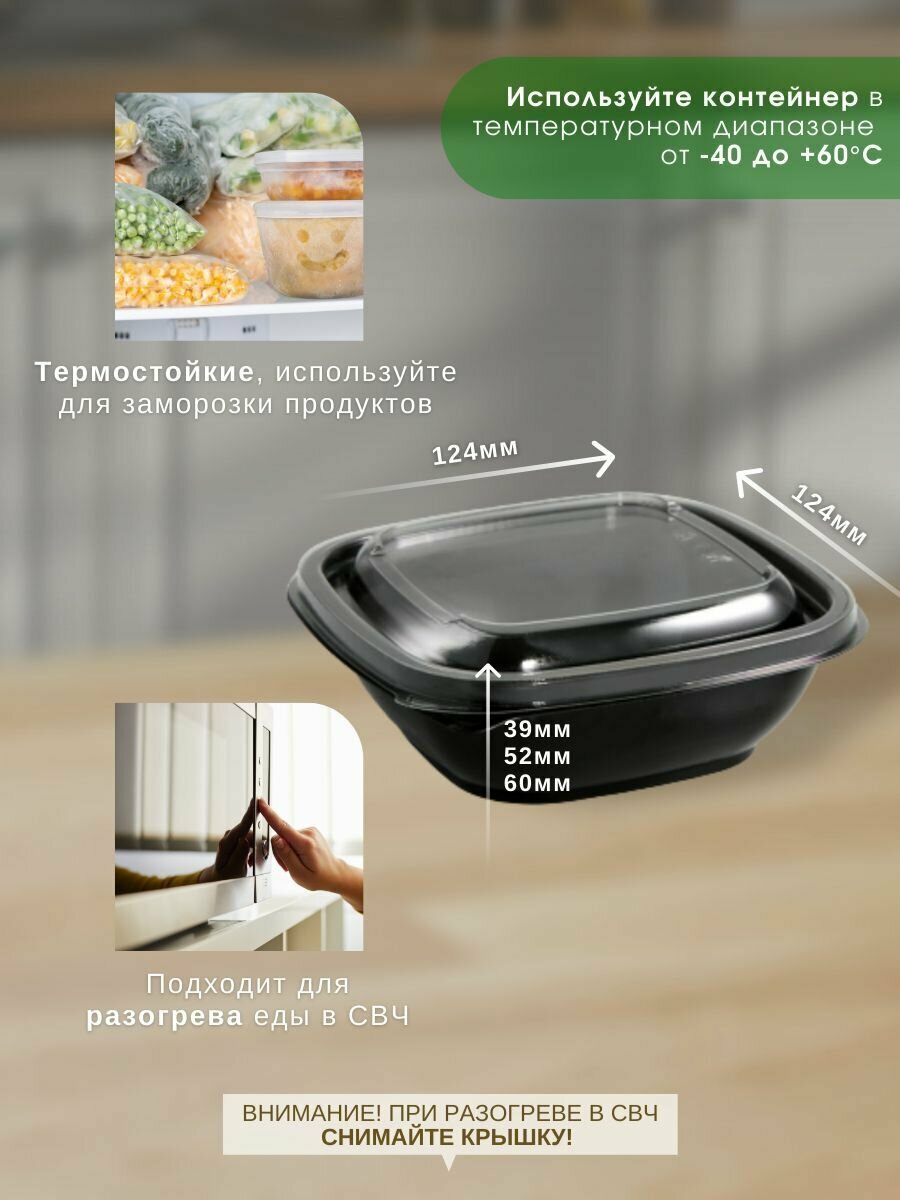 Отзывы на Контейнеры одноразовые пластиковые Каштан Тренд черные с прозрачной крышкой 250 мл, 375 мл, 500 мл, набор контейнеров 45 шт