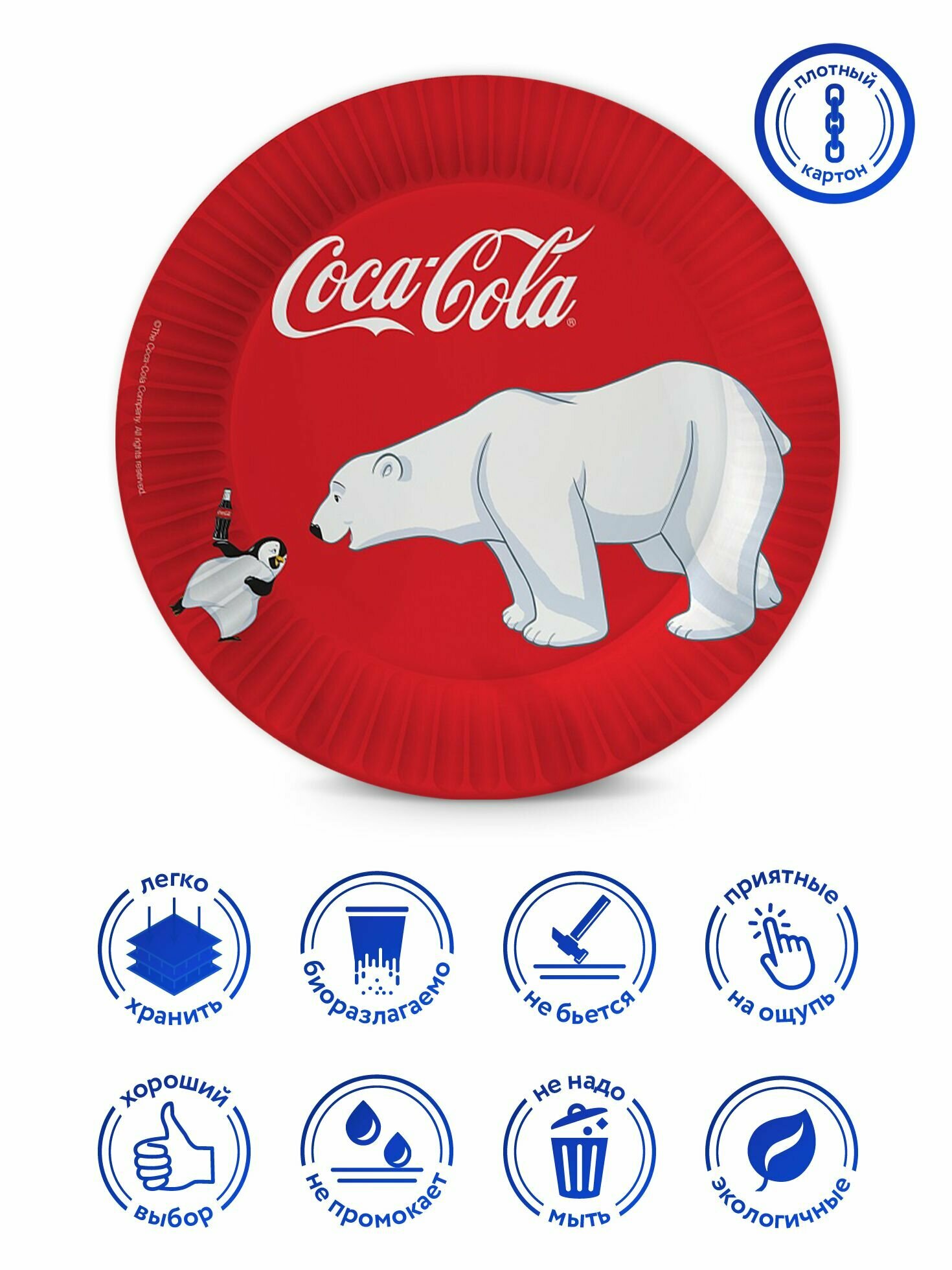 Одноразовая посуда для праздника и пикника ND Play / Набор бумажных тарелок Coca-Cola / Кока Кола на 18 персон (диаметр 23 см, 18 шт.), 303650 информация: