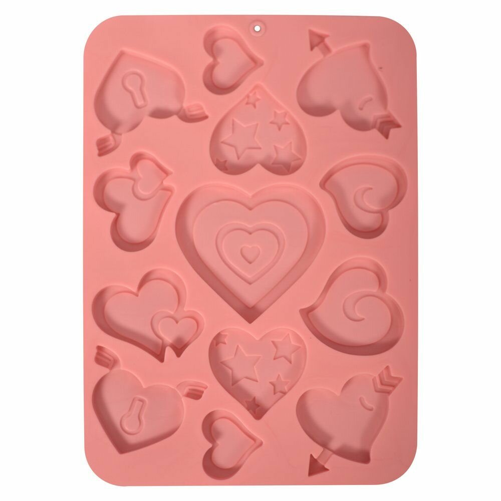 10 цен на Форма для конфет, молд "Сердечки", силиконовая, 13 ячеек, розовая. Размер 23х16,5х1 см.