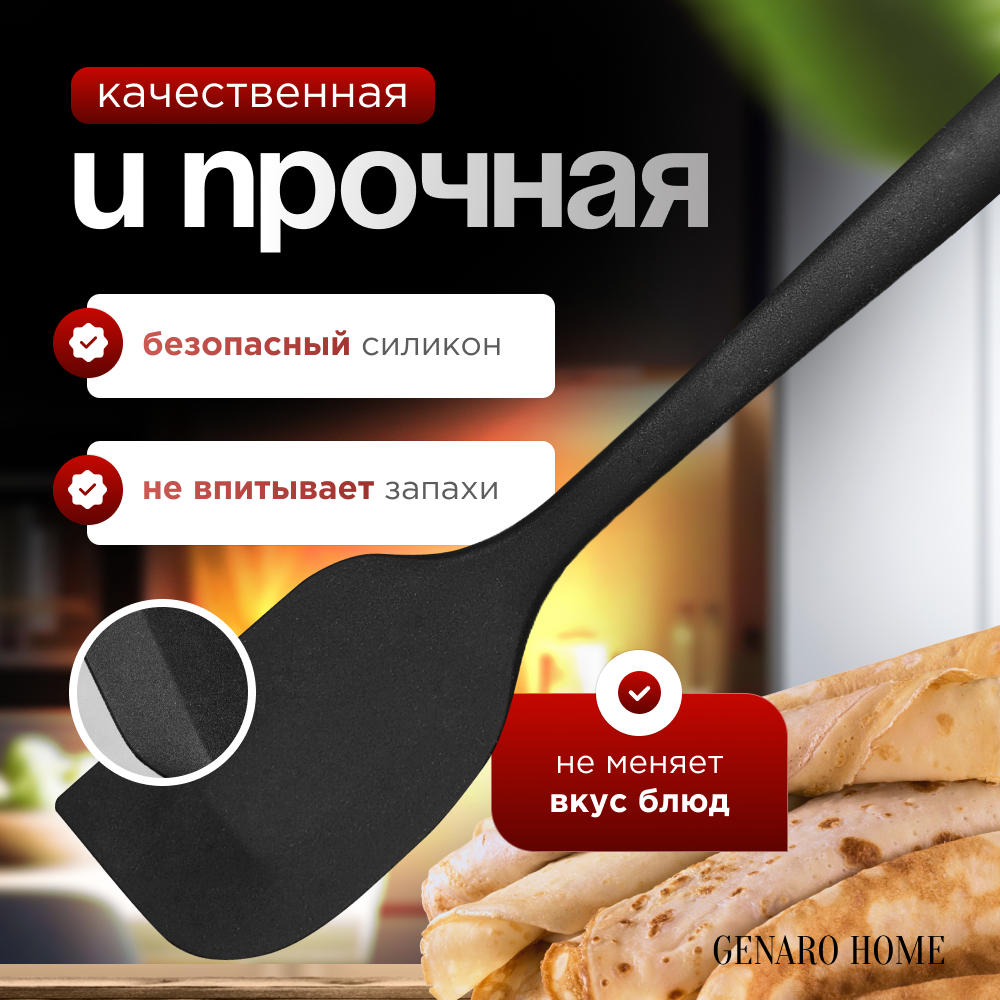10 цен на Лопатка силиконовая для кухни " Genaro Home" 28 см, черная