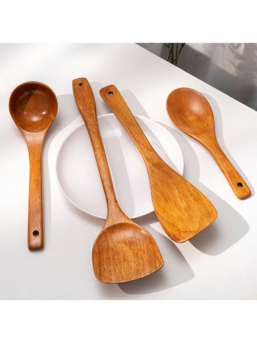 Ложка для риса СКДрево из тикового дерева с короткой ручкой, 19Х8 см, 1шт