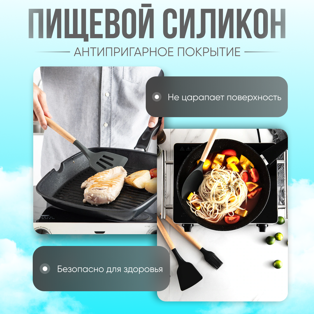 Отзывы на Набор кухонных принадлежностей FGS, 12 предметов+подставка, черный