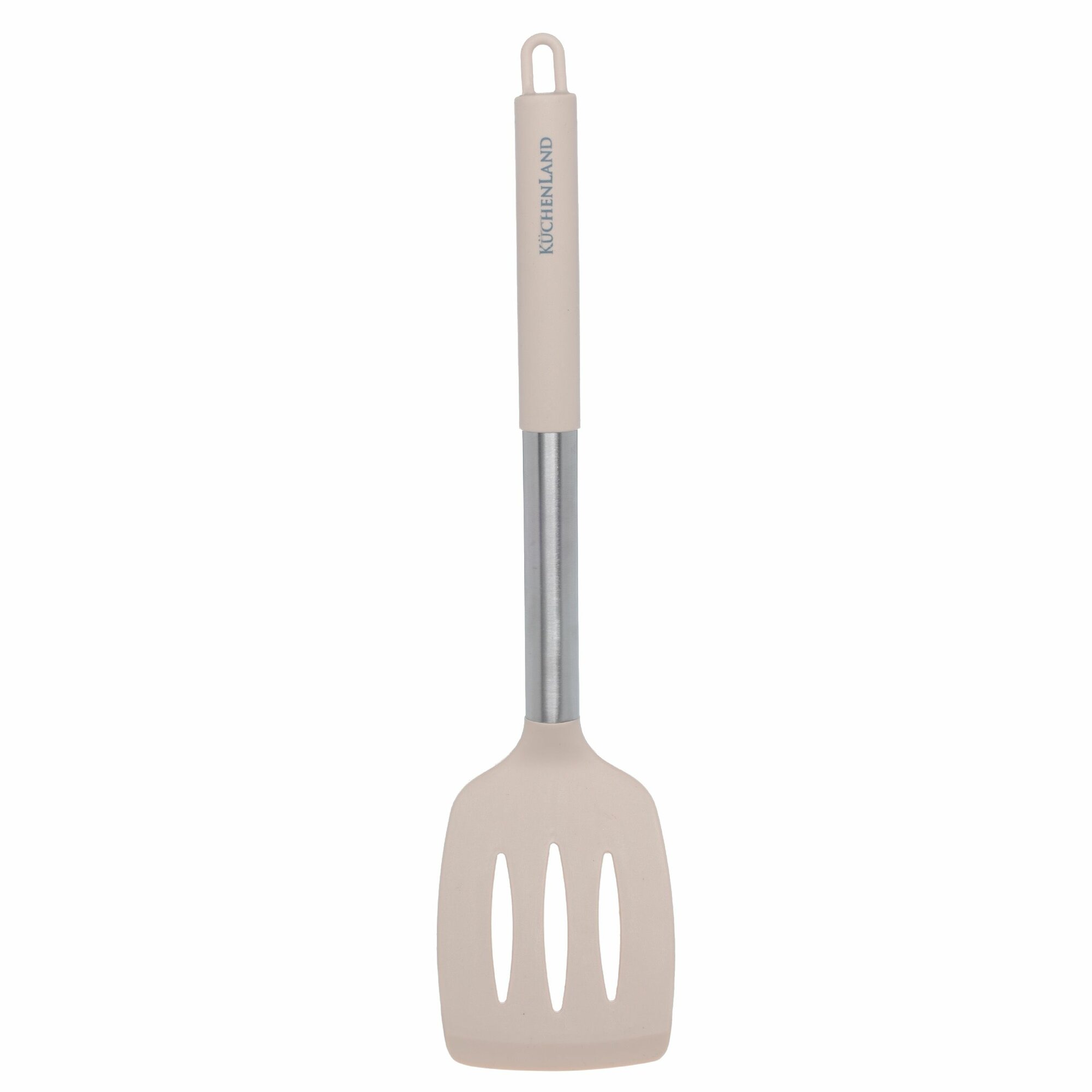 Лопатка, Kuchenland, 33 см, с прорезями, силикон/сталь, серо-бежевая, Metallic информация: