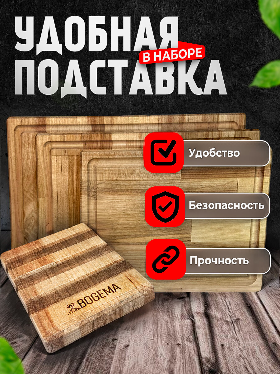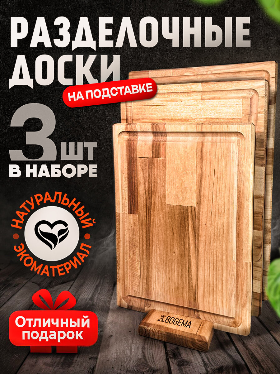 Отзывы на Разделочные доски деревянные набор BOGEMA на подставке из массива березы