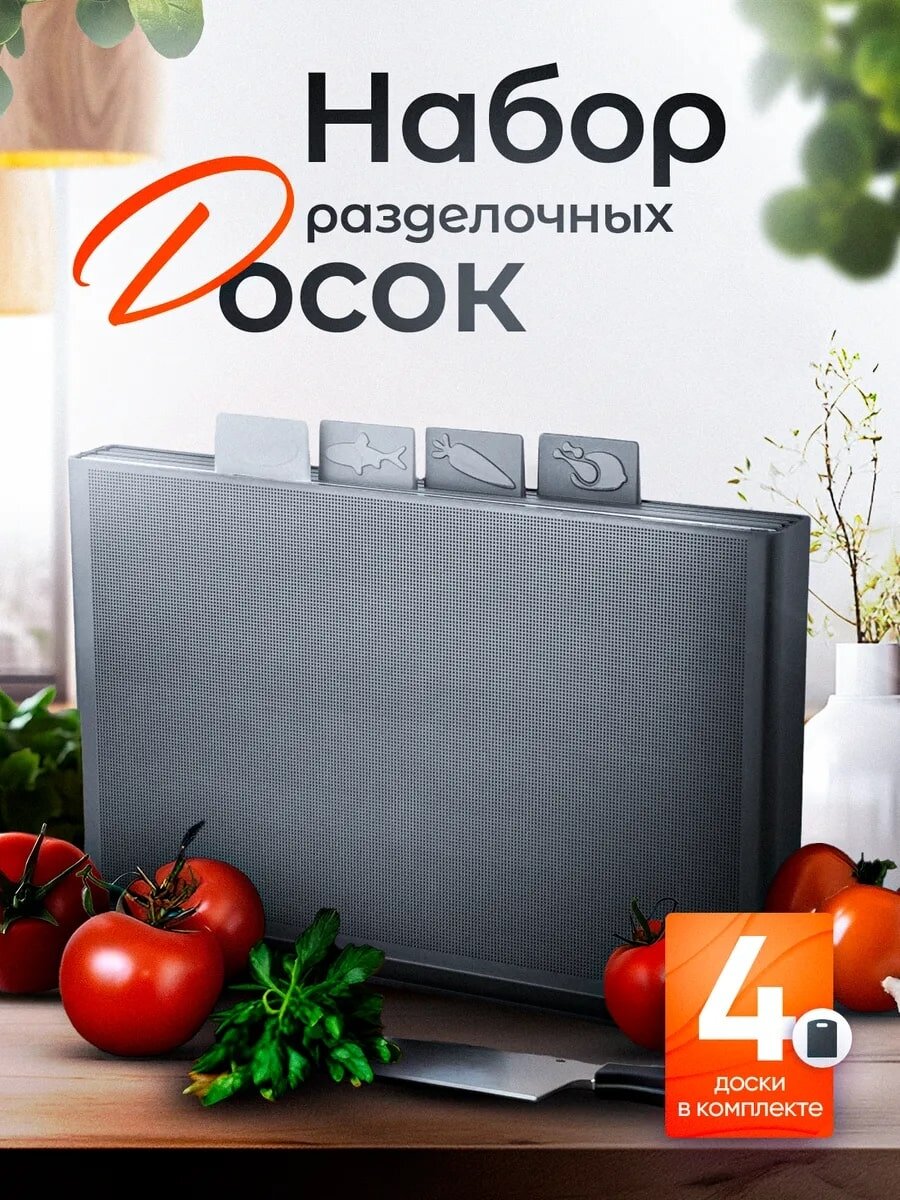 Отзывы на Набор разделочных досок для кухни на подставке, набор 4 шт, серые