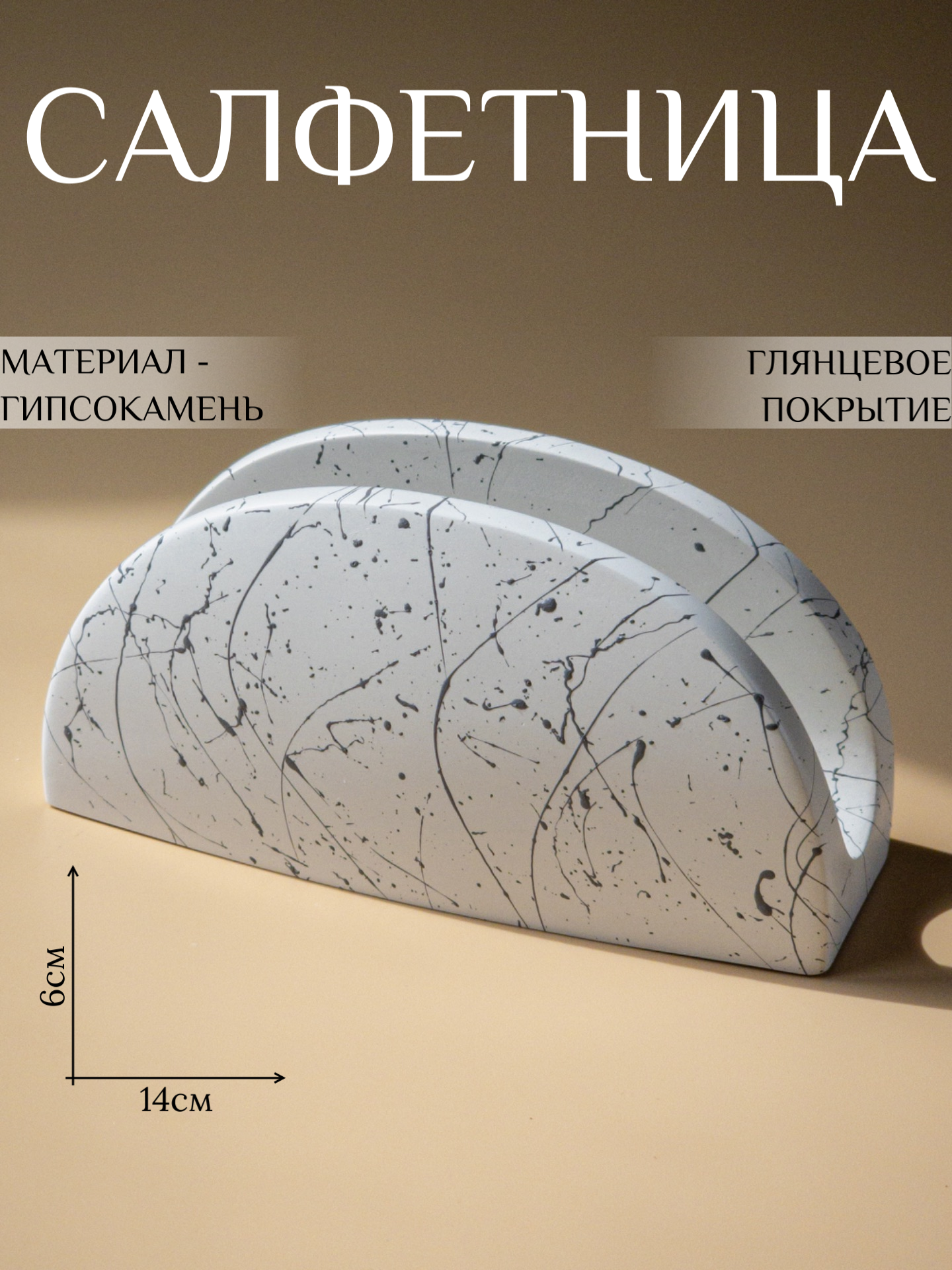 Отзывы на Салфетница кухонная настольная Ashes Deco, 14х6см, гипсокамень, белая с серыми брызгами, глянцевая