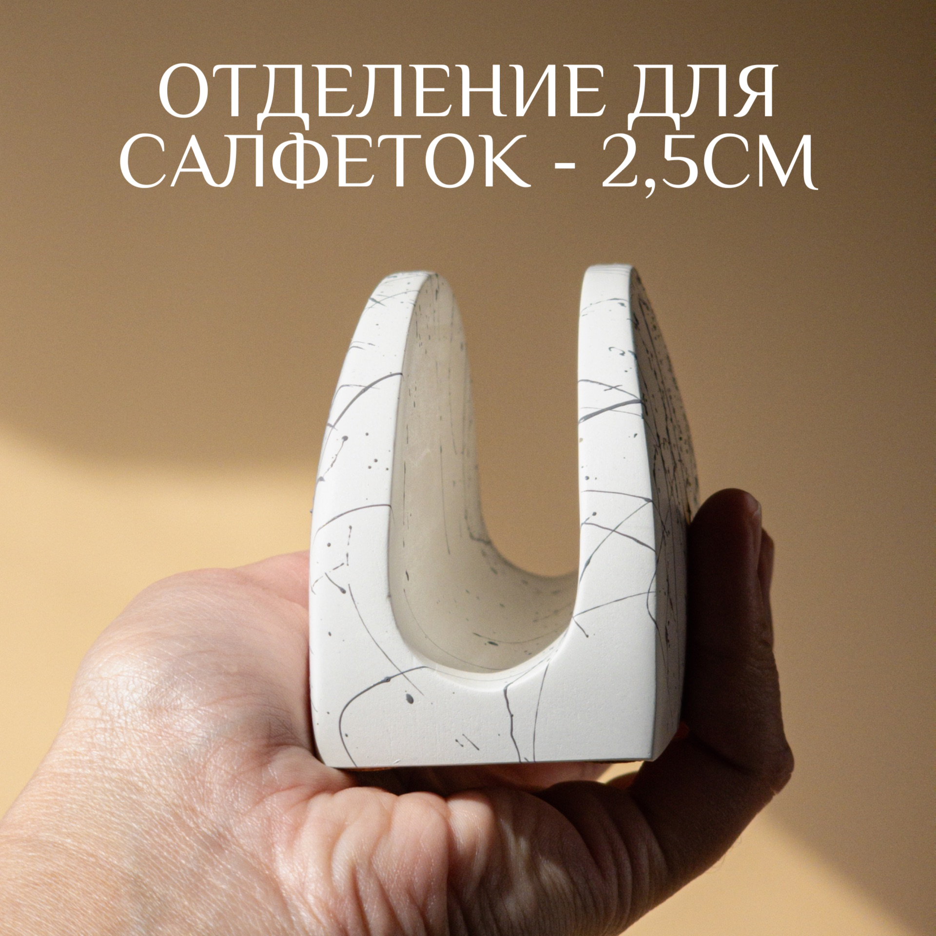Салфетница кухонная настольная Ashes Deco, 14х6см, гипсокамень, белая с серыми брызгами, глянцевая информация: