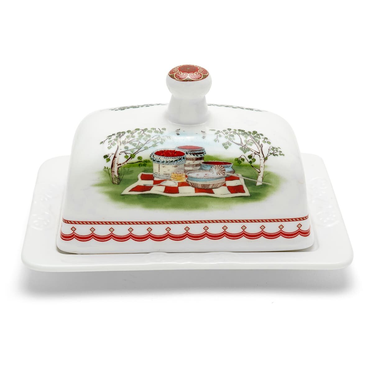 Масленка "Ягода. Березки", крышка с ручкой, фарфор, белая, 250мл информация: