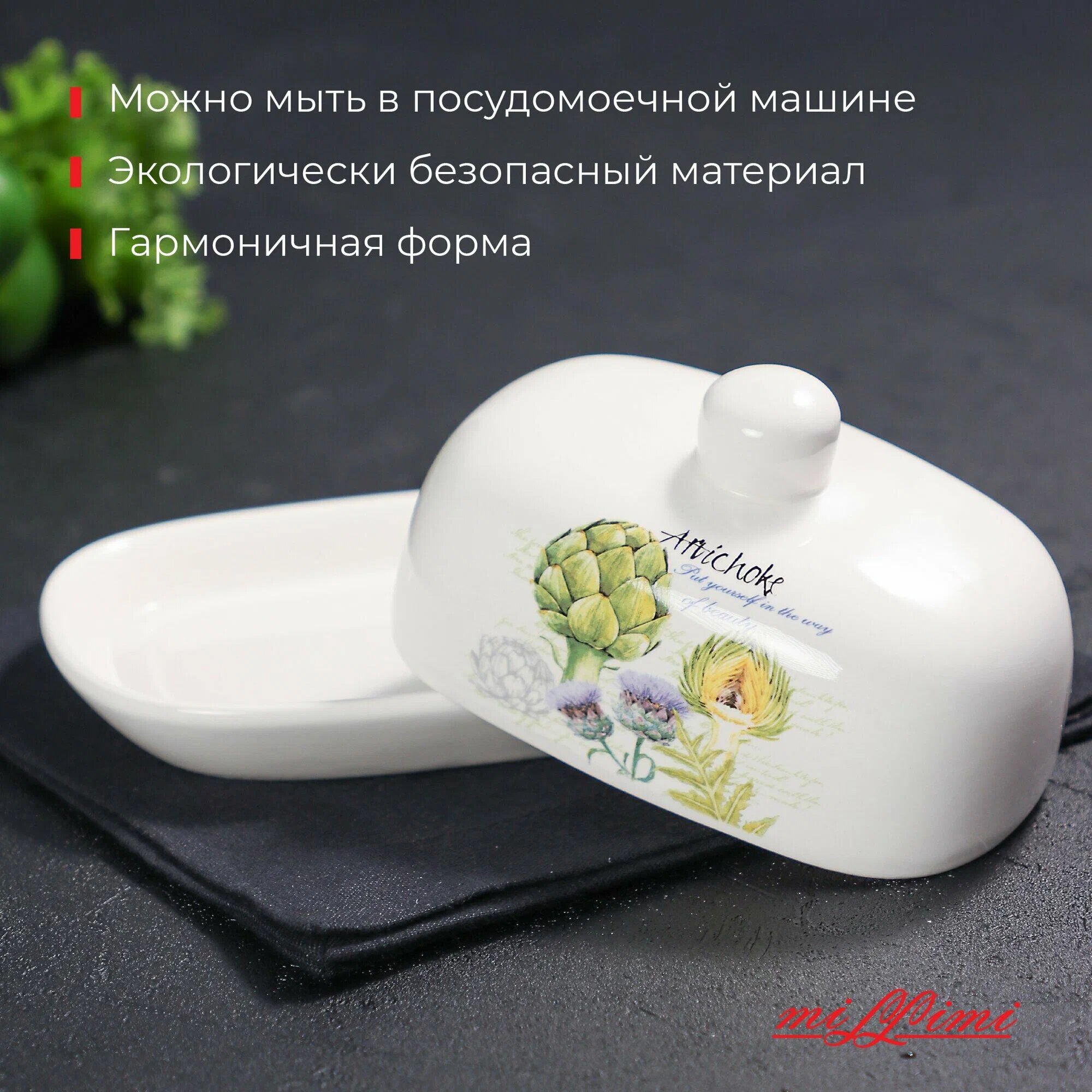 Масленка керамическая MILLIMI Артишоки,17х12x8см, белая, с крышкой информация: