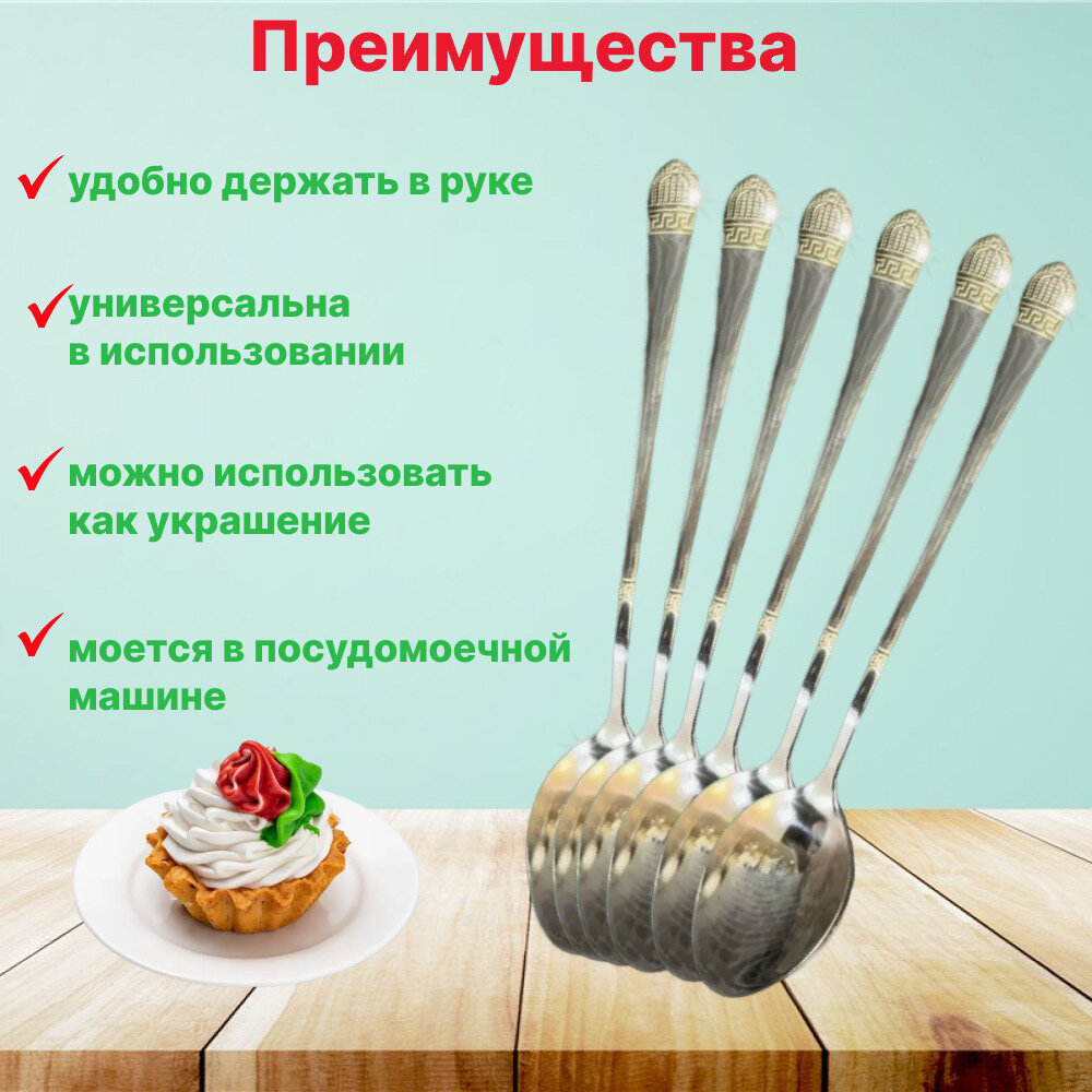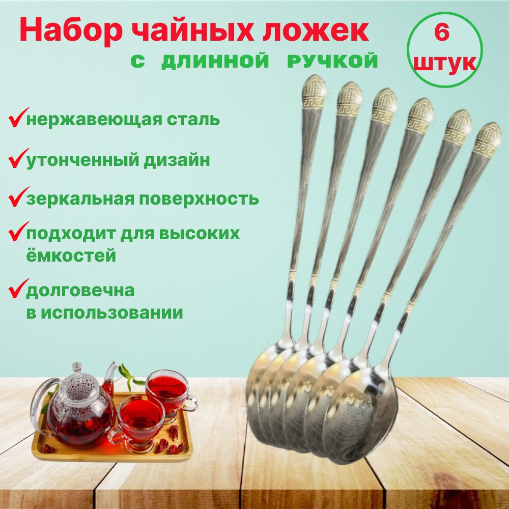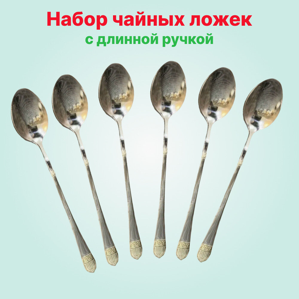10 цен на Ложки чайные с длинной ручкой , кофейная , десертная , коктейльная , 6 шт , с узором