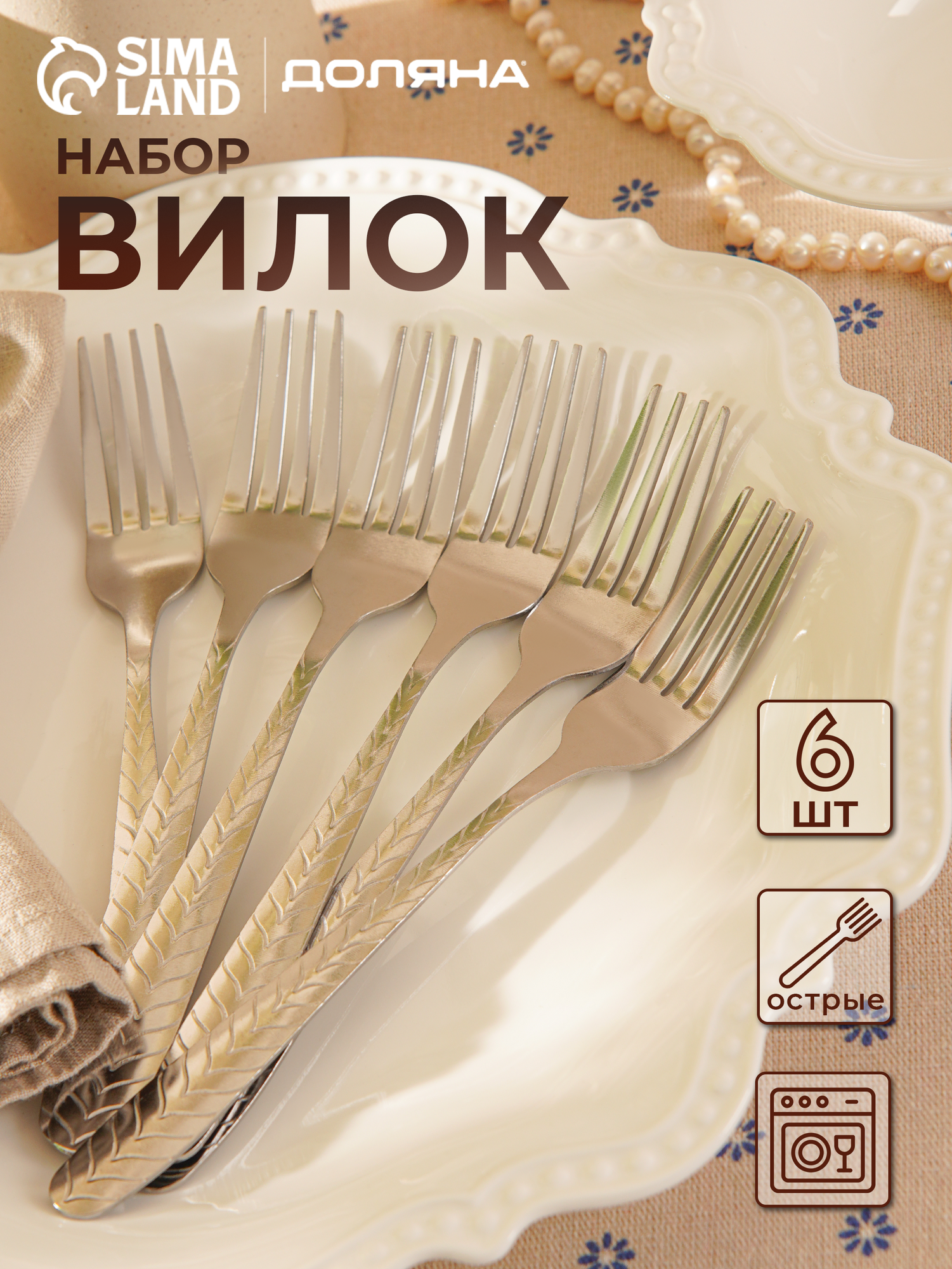 Отзывы на Вилок столовые, на 6 персон Доляна «Колосок», h=19 см, цвет серебряный