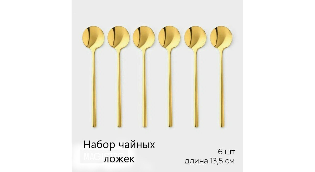 Набор чайных ложек "6 шт", длина 13см, золотой цвет, нержавеющая сталь информация: