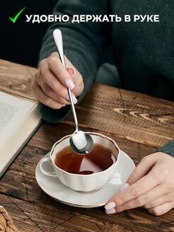 Ложки чайные/кофейные с длинной ручкой 20 см 6 штук из нержавеющей стали информация: