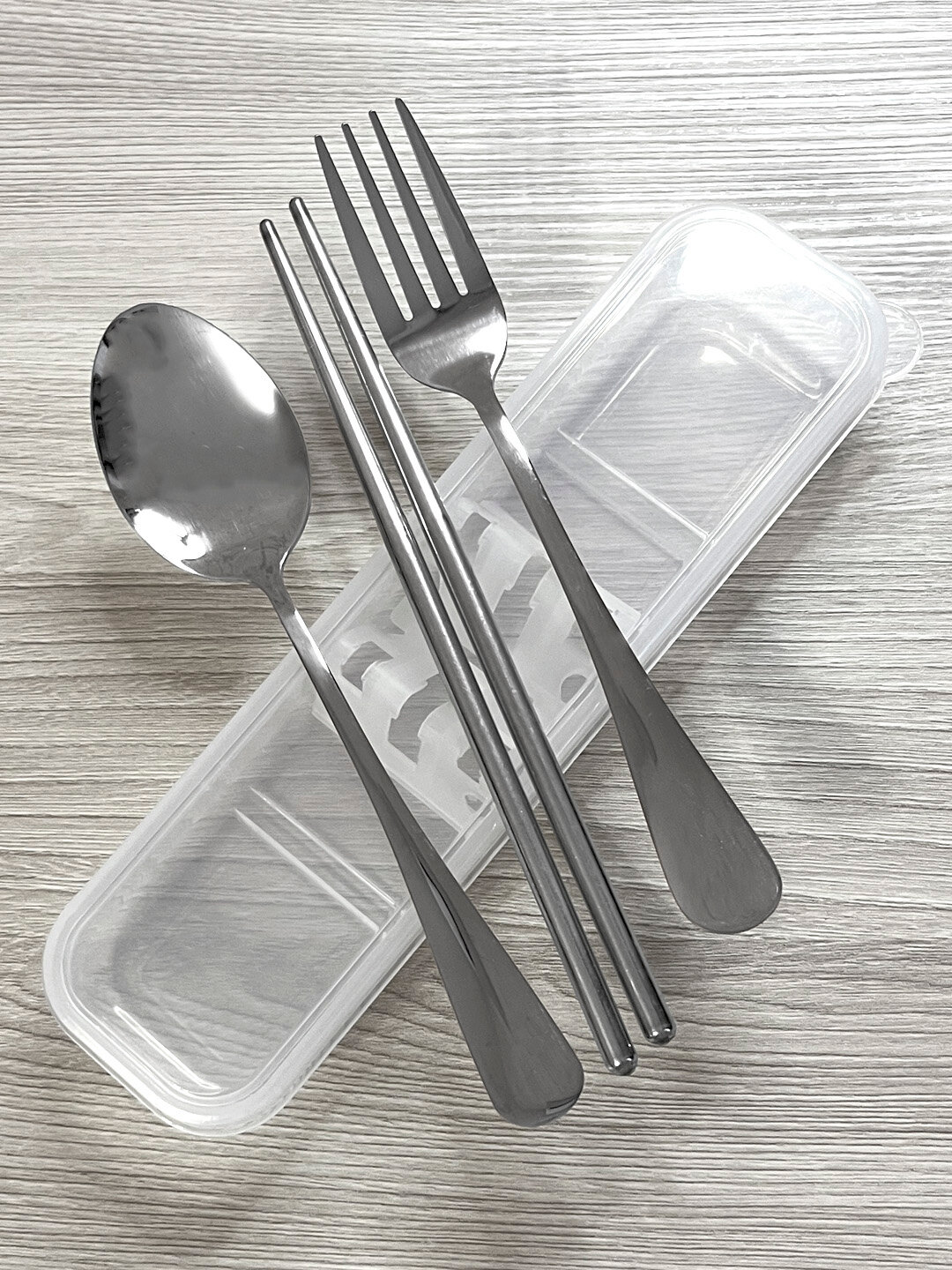 Отзывы на Дорожный набор столовых приборов в футляре - 3 предмета, качественный (ложка, вилка, китайские палочки), прозрачный