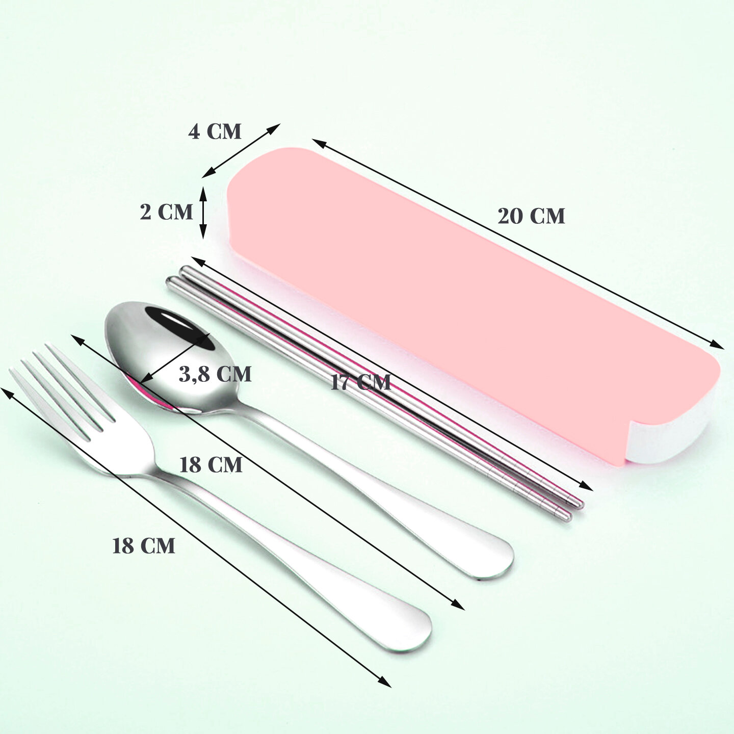 10 цен на Дорожный набор столовых приборов из 3 предметов (вилка, ложка , китайские палочки), увеличена толщина металла, розовый