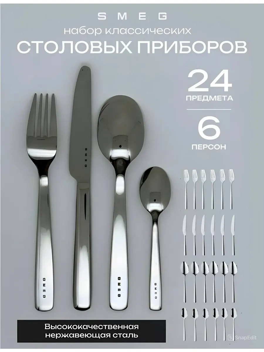 Отзывы на Набор столовых приборов "SMEG", металл, 24 предмета для 6 персон
