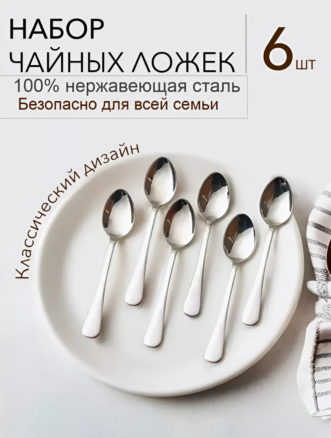 Набор чайных ложек "Без рисунка", 6 штук , нержавеющая сталь информация: