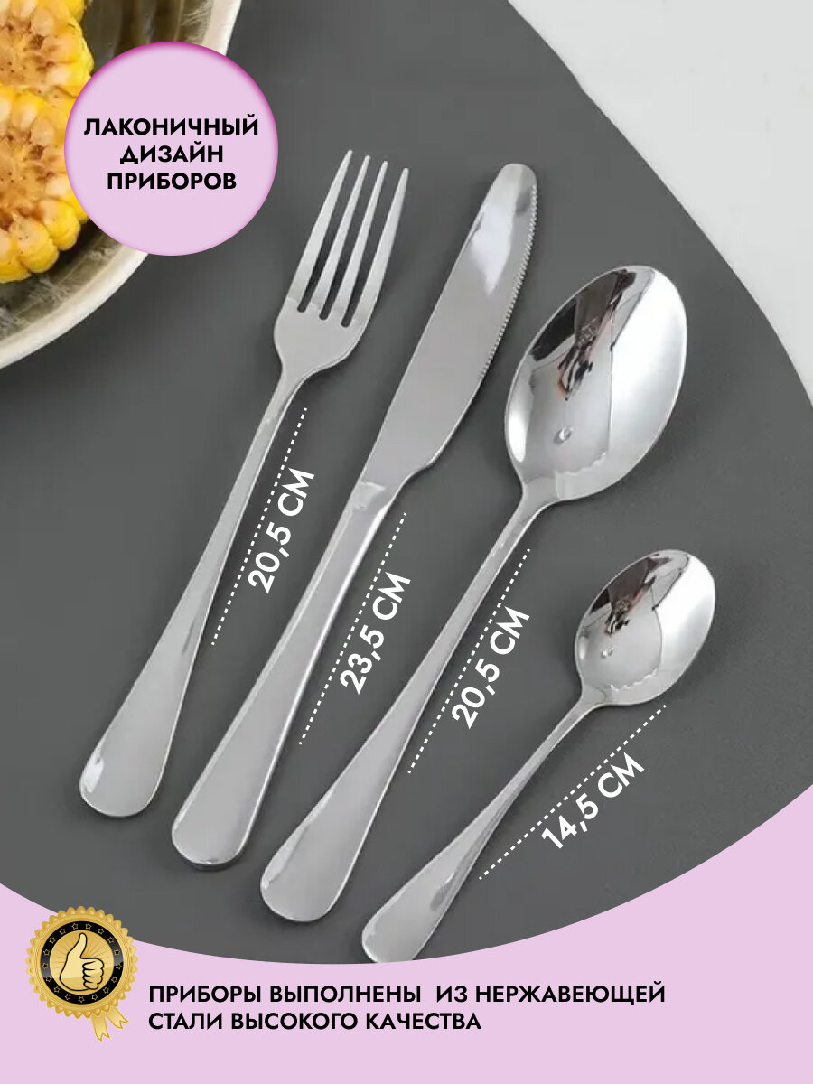 Набор столовых приборов 24 предмета на 6 персон "Яйцо" серебристый информация: