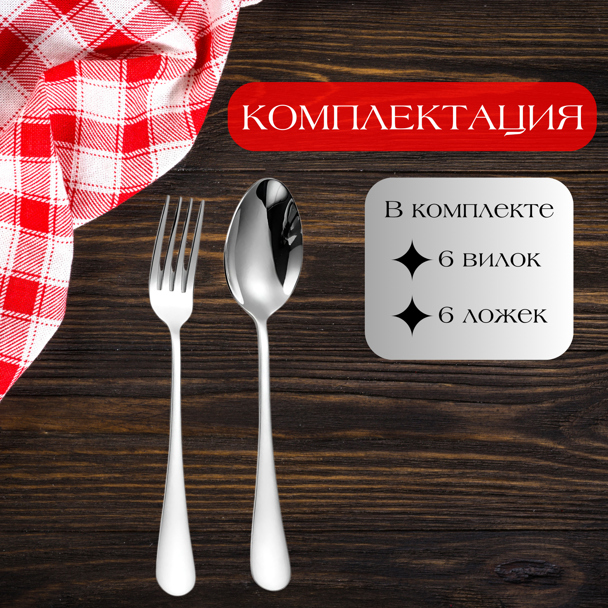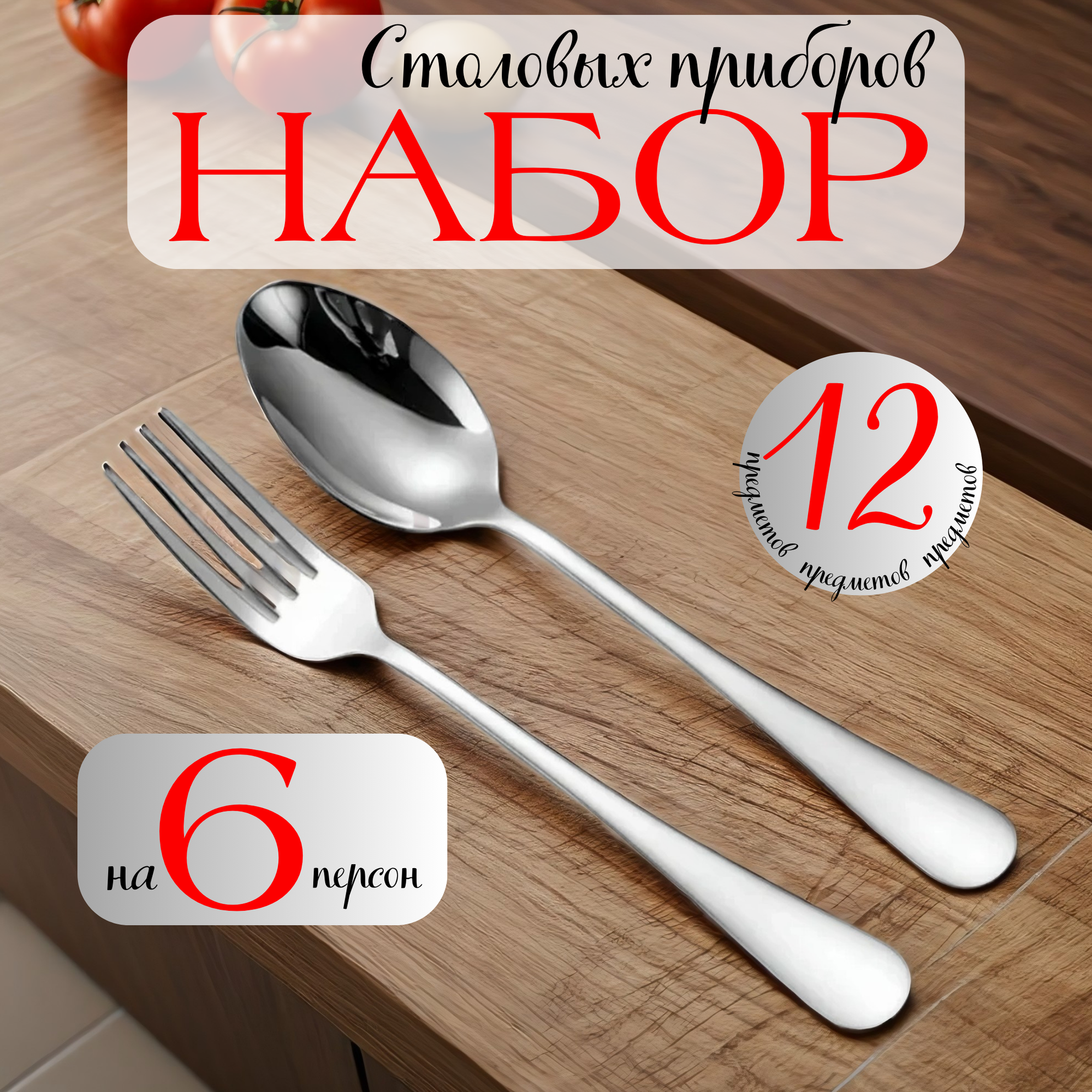 Набор столовых приборов на 6 персон, нержавеющая сталь, 12 предметов информация: