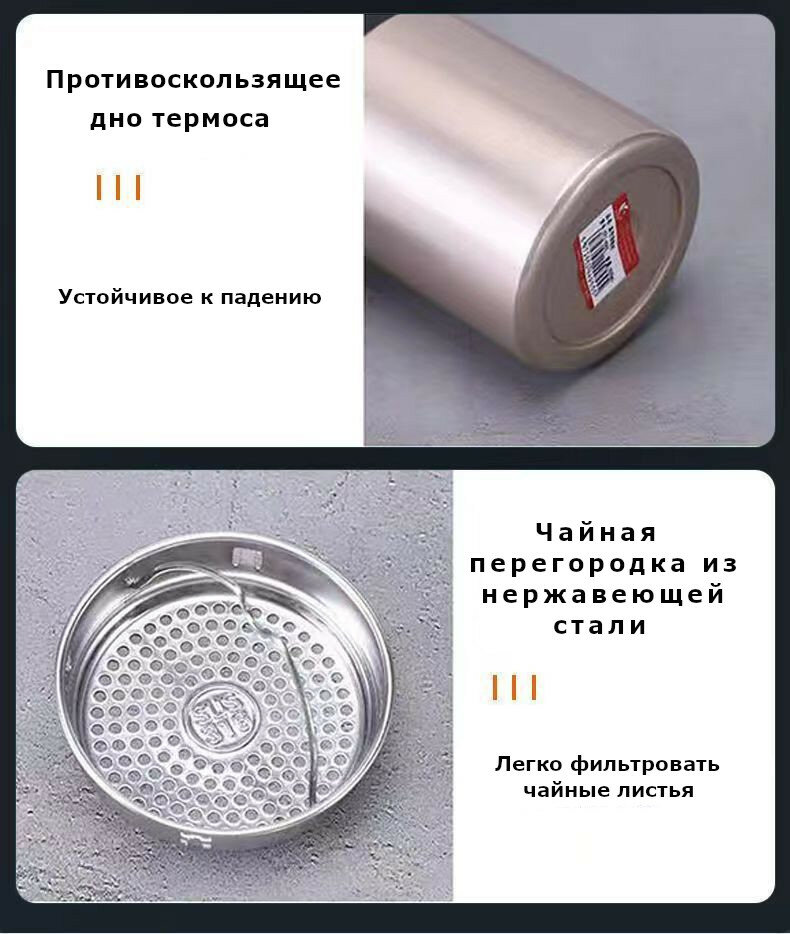 Отзывы на Термос 1 литр, для горячих и холодных напитков, с ремешком, с ситечком, стальной цвет