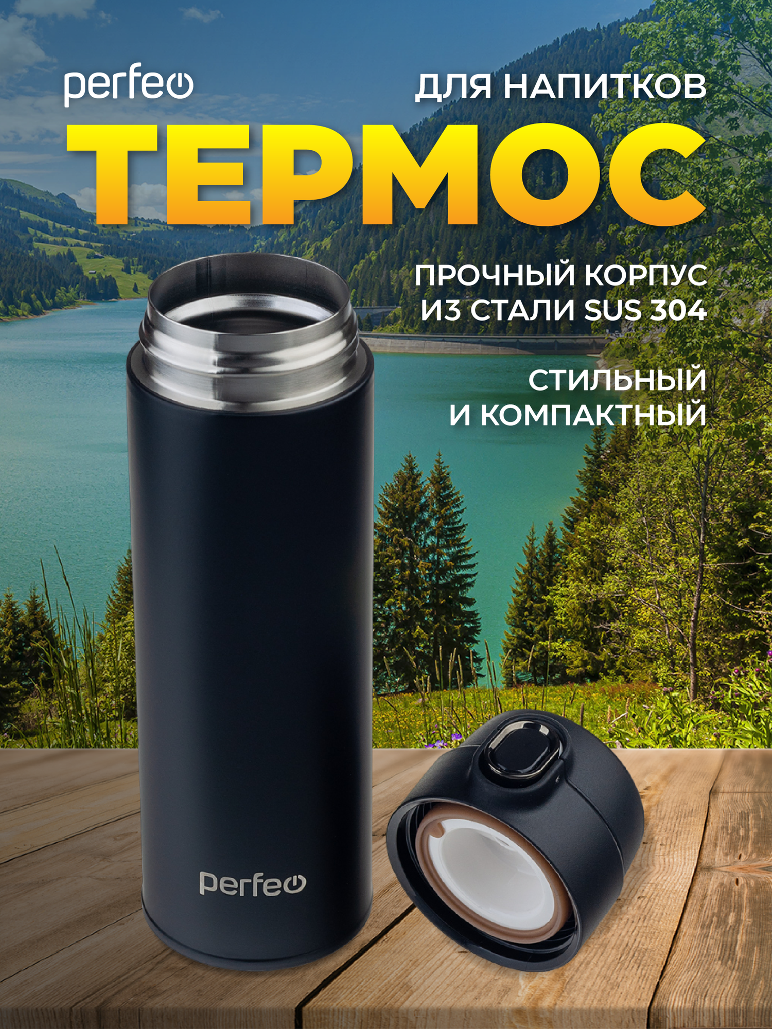 Отзывы на Термос PERFEO для напитков с крышкой-поилкой, объем 0,5 л, черный (PF_D0207)