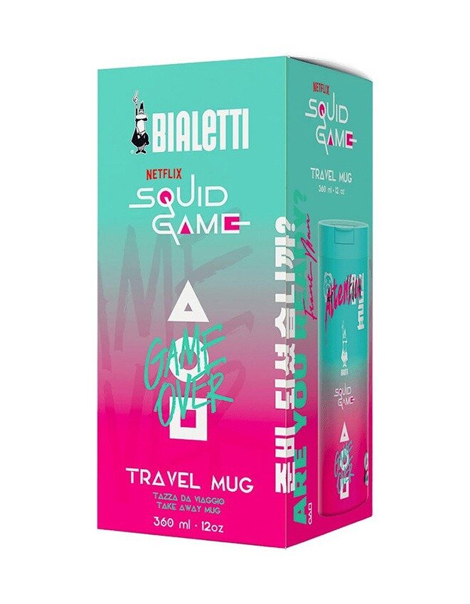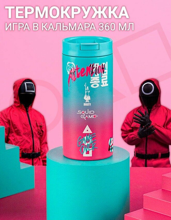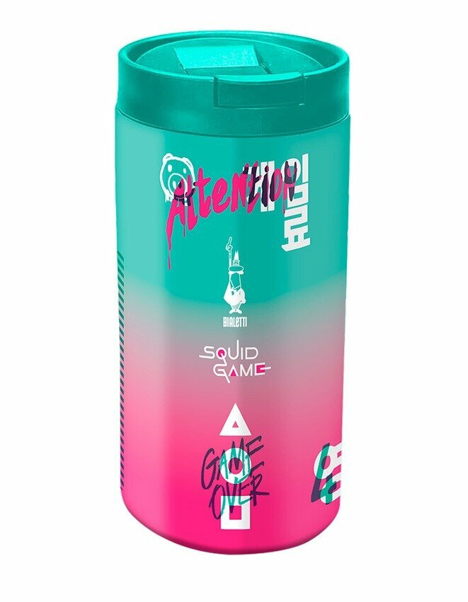 Отзывы на Термокружка "Игра в кальмара" Bialetti, розово-голубого цвета, сталь, 360мл