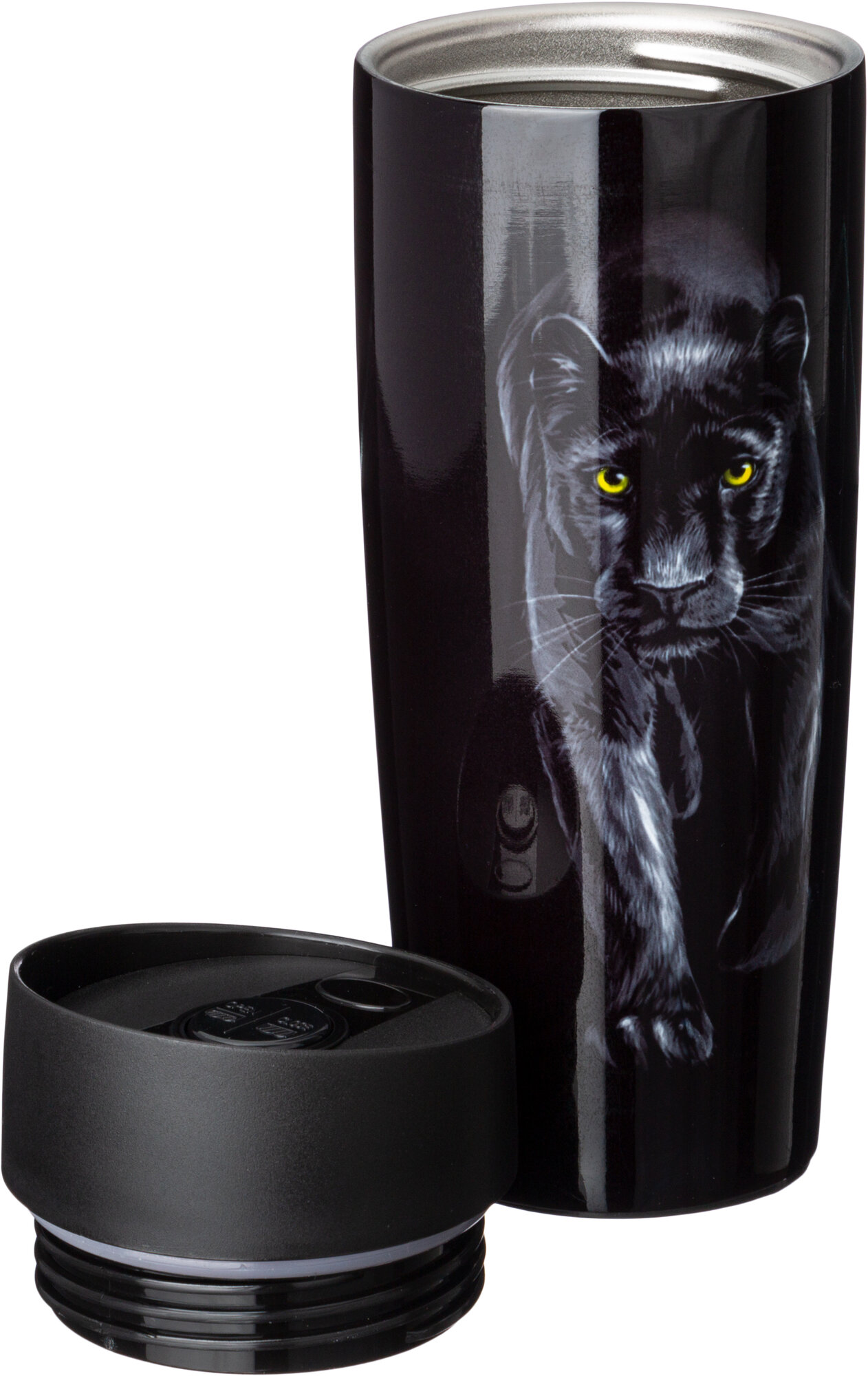 Отзывы на Термокружка Agness "Черная пантера", с кнопкой-стоппером, 360 мл, колба, нержавеющая сталь