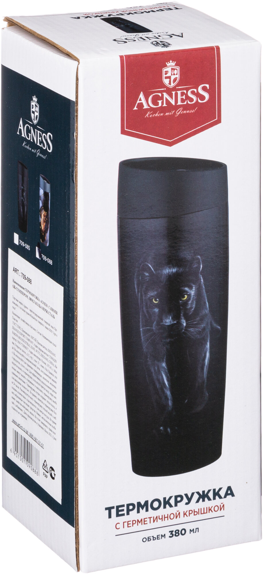 Термокружка Agness "Черная пантера", с кнопкой-стоппером, 360 мл, колба, нержавеющая сталь информация:
