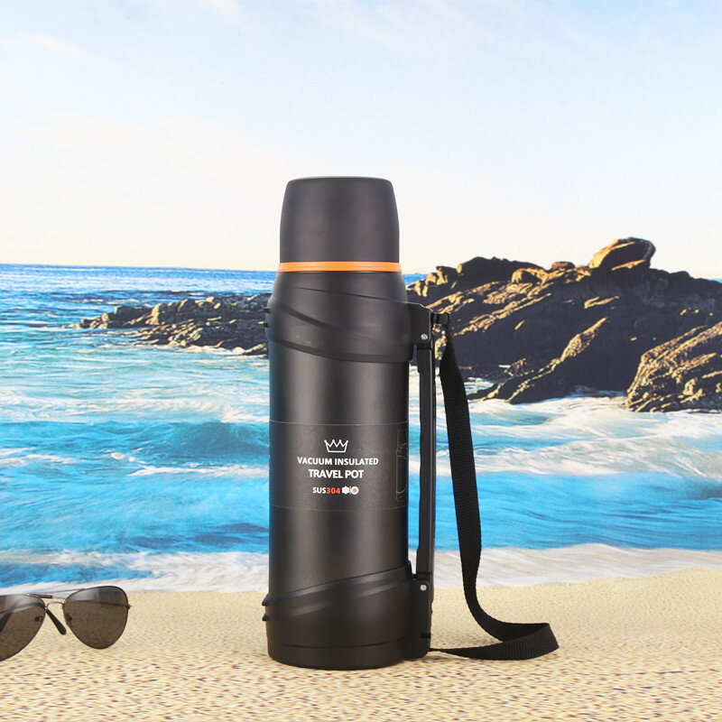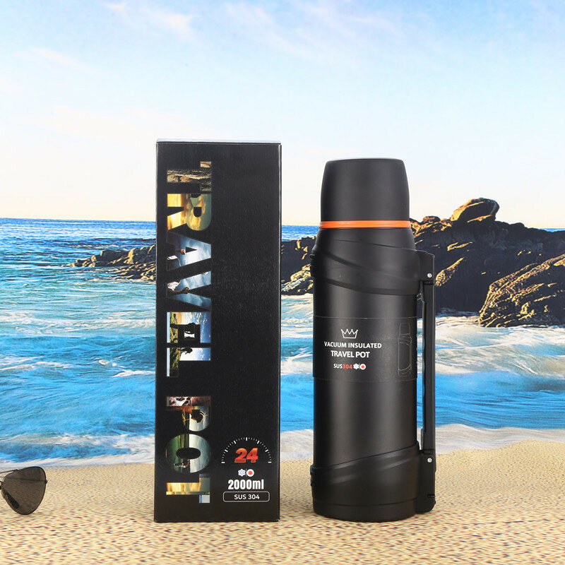 10 цен на Термос 2 литра туристический, походный, для горячих и холодных напитков, черный