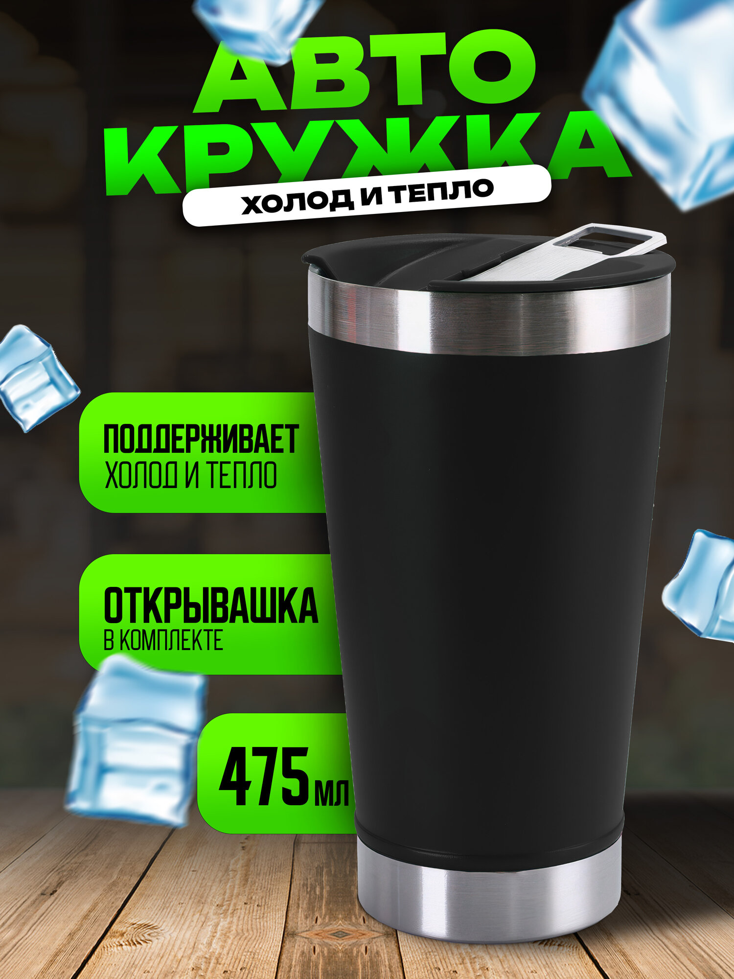Термокружка автомобильная IBRICO "Для кофе и чая", 0,48 л, сталь, чёрная информация: