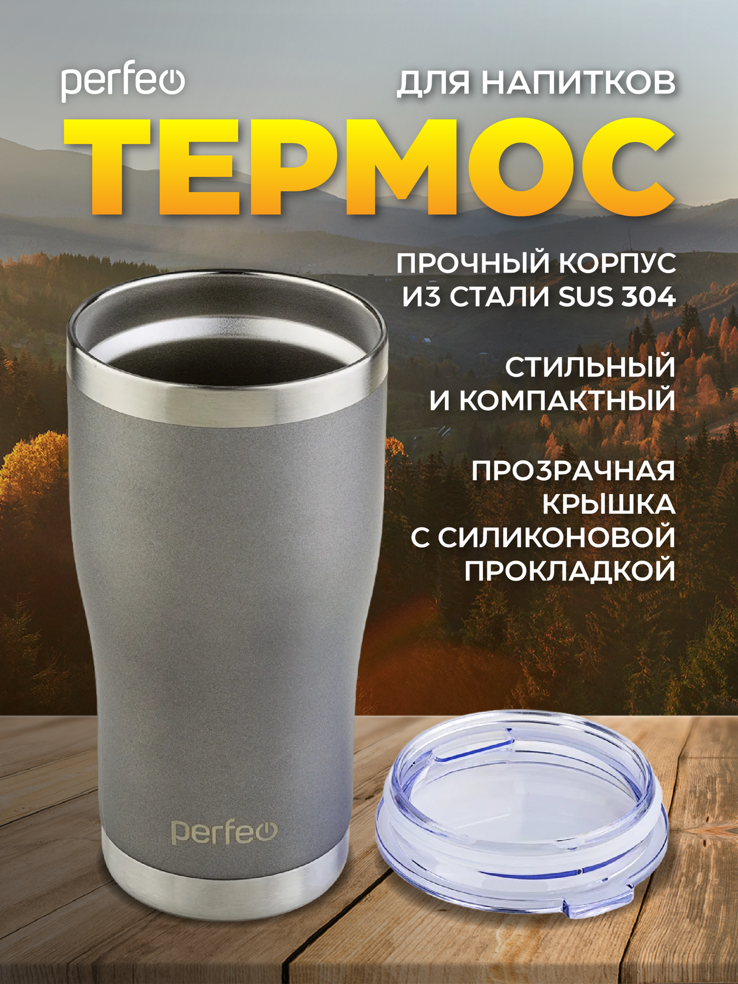 Отзывы на Термокружка PERFEO для напитков с прозрачной крышкой, объем 0,6 л, серый (PF_C3725)
