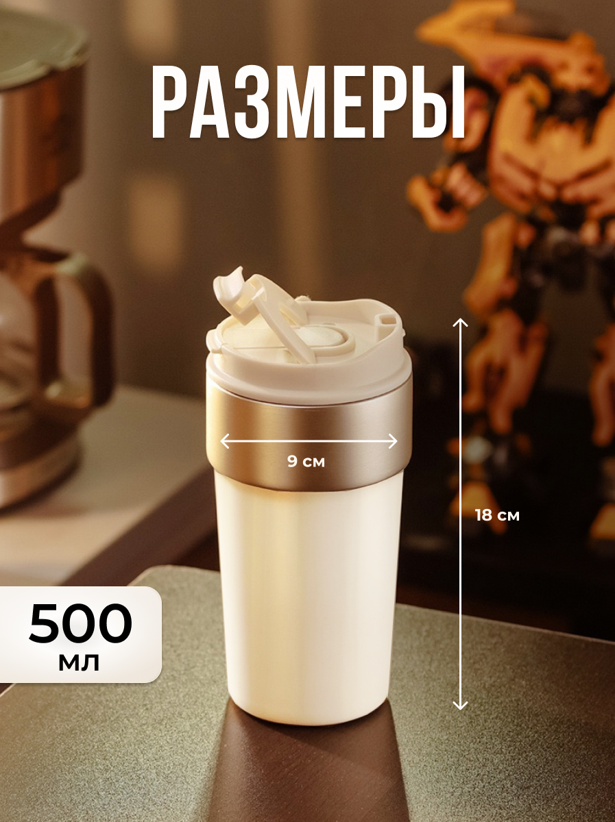 10 цен на Термокружка женская бежевая для кофе с трубочкой глянец 500 мл