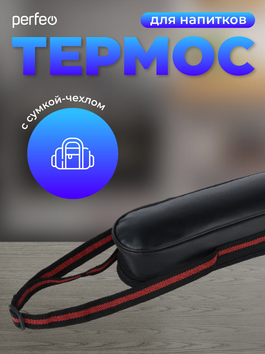 Отзывы на Термос PERFEO для напитков с пробкой-кнопкой, сумкой, объем 0,75 л, нерж. сталь (PF_E1365)