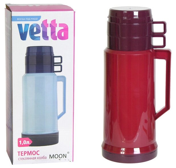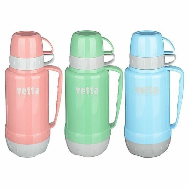 Отзывы на Термос Vetta Tourist, стеклянная колба, 1 л, пластик, две кружки, цвет в ассортименте