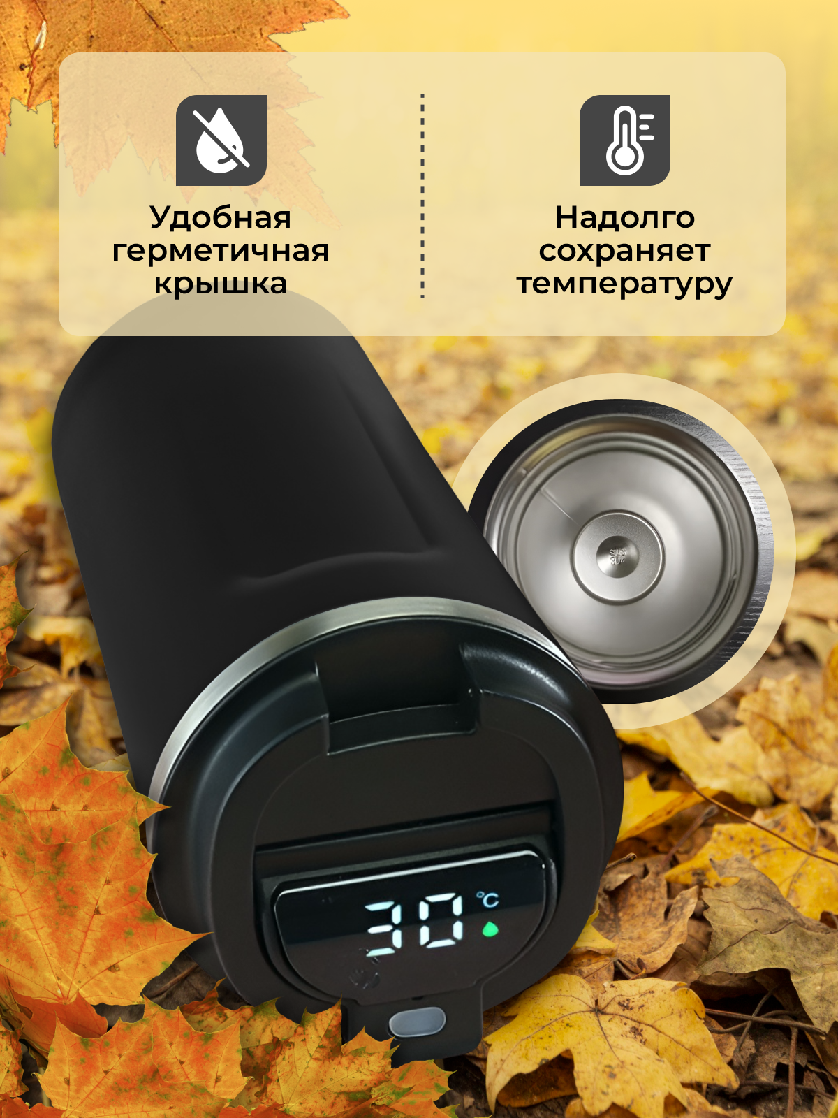 Термокружка для чая с датчиком тем-ры 450 мл термостакан серебристо-черный 1 289 ₽
