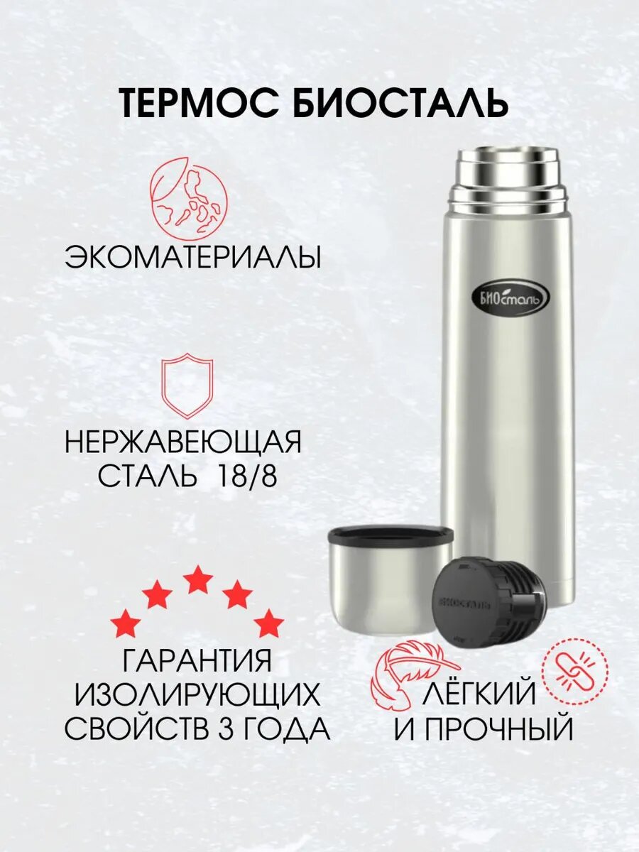 Отзывы на Термос BIOSTAL, для чая и кофе, 1 л, вакуумный, ударопрочный, серебристый