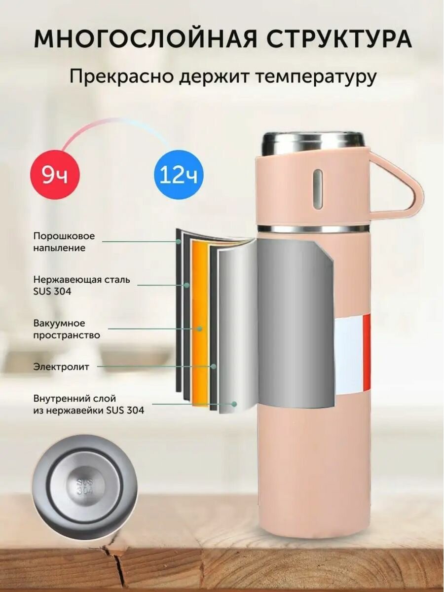 Вакуумный термос с кружками 0,5, литров с тремя кружками/Подарочный набор информация: