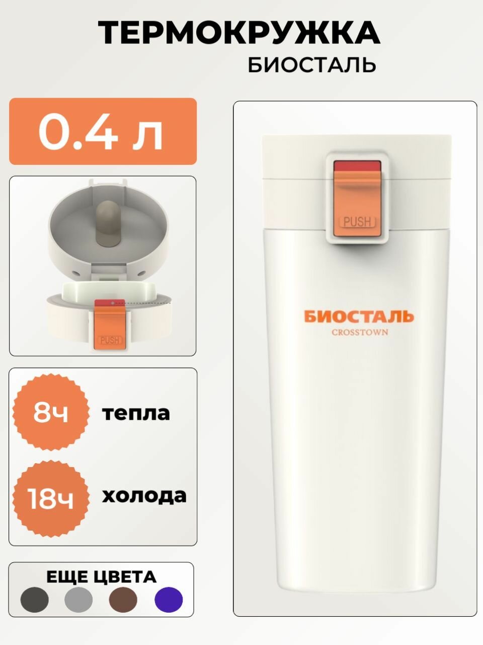 Термос-кружка Biostal (Биосталь) Crosstown 400 мл. (0,4 л) походная для кофе / Biostal с двойными стенками / кружка 1 670 ₽