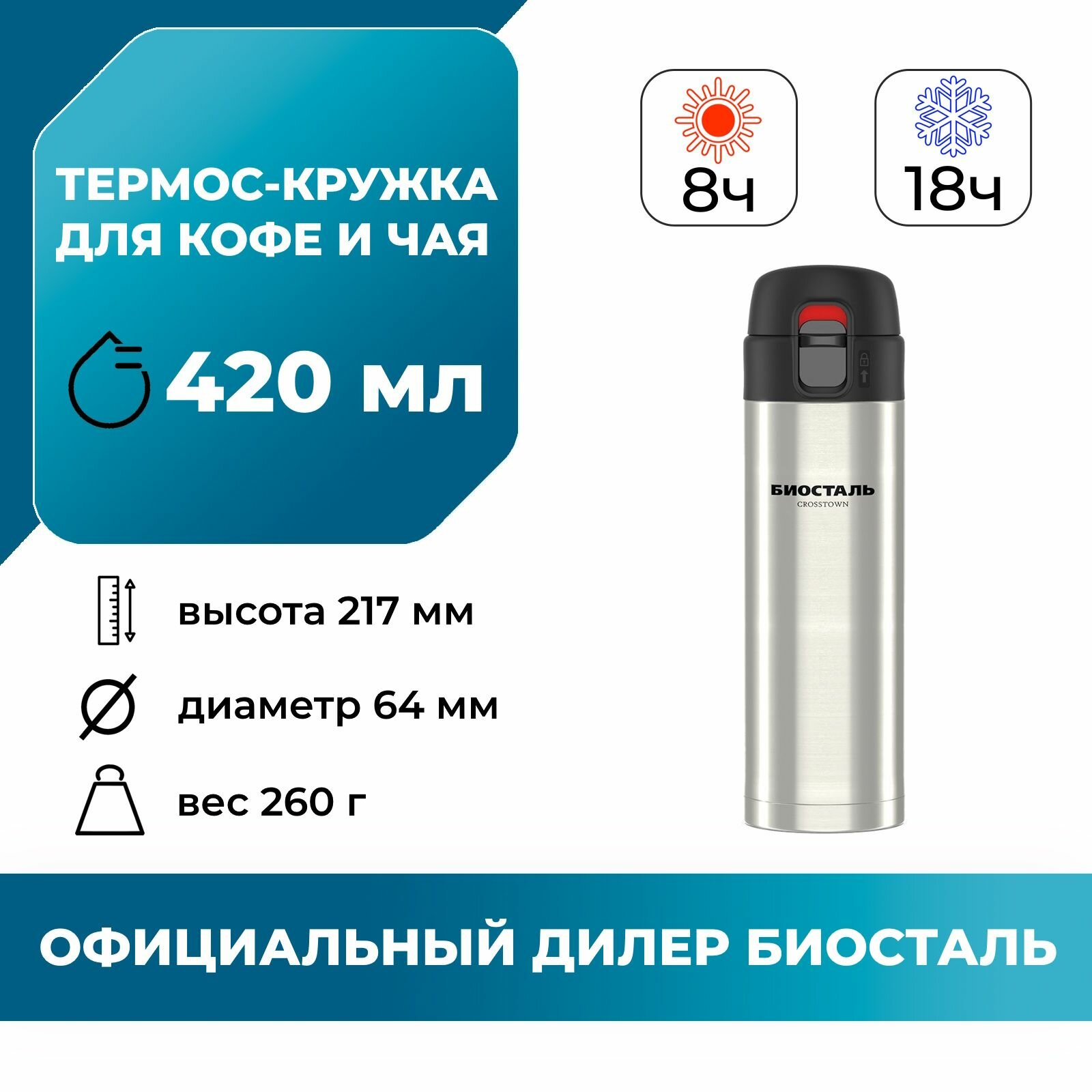 Термос-кружка Biostal (Биосталь) Crosstown 420мл. (0,420 л) NMU-420 походная для кофе / Biostal с двойными стенками / кружка информация: